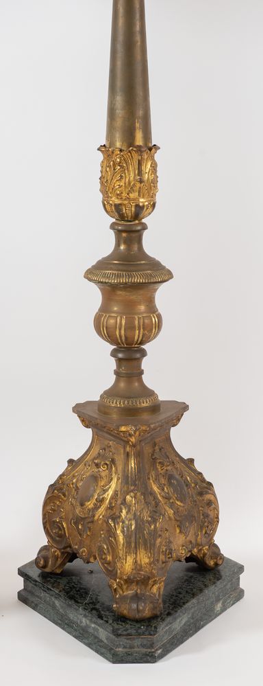 Lot 152 | Coppia di torciere in lamierino sbalzato. Italia, fine del XIX secolo. Cm...