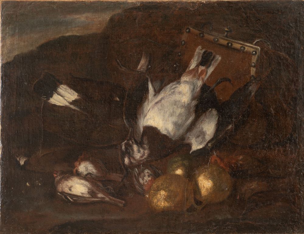 Maestro della seconda metà del XVII secolo "Natura morta". Olio su tela. Cm 49x64. (restauri)