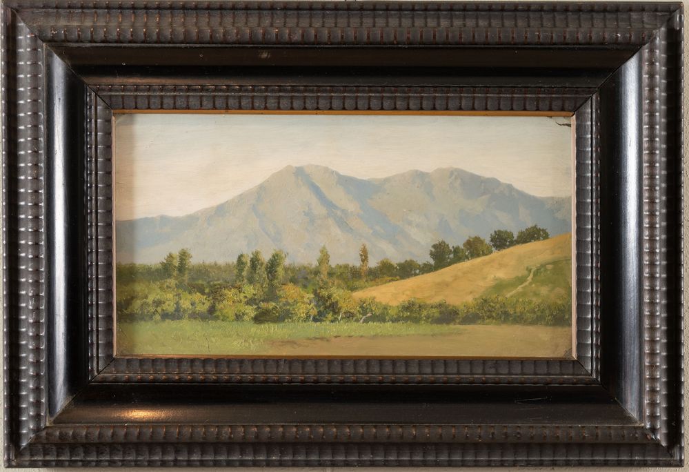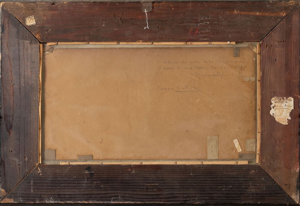 CORIOLANO VIGHI (Firenze 1852 - Bologna 1905). "Paesaggio marchigiano". Olio su faesite. Cm 28x51. Al retro reca dichiarazione di autenticità e firma del figlio.