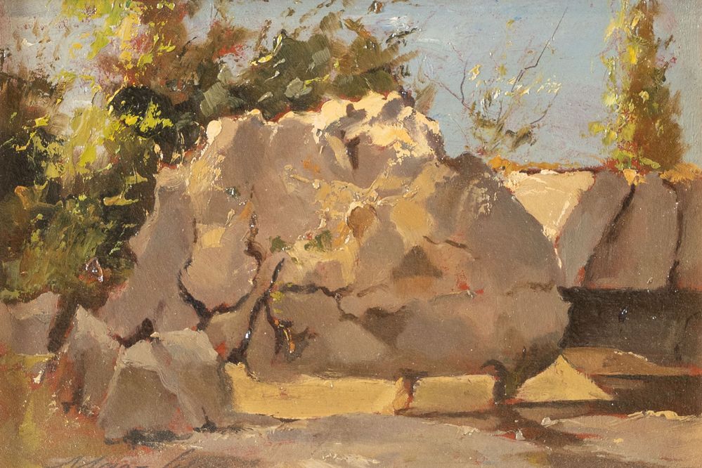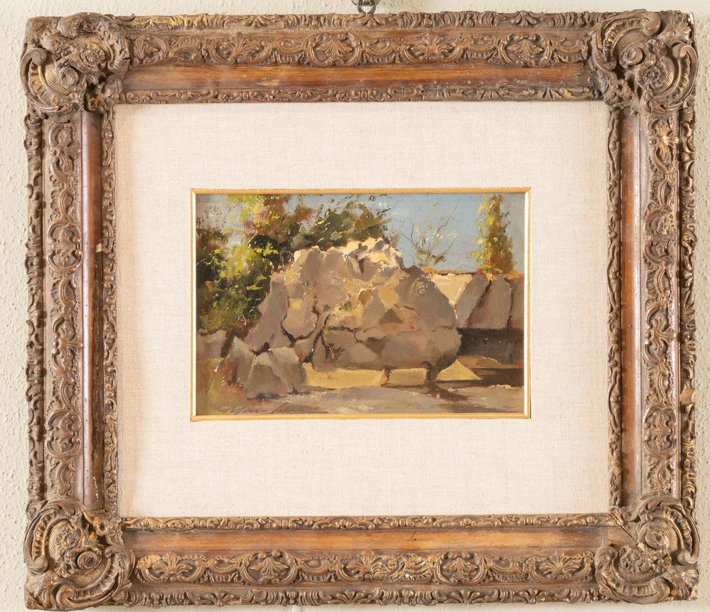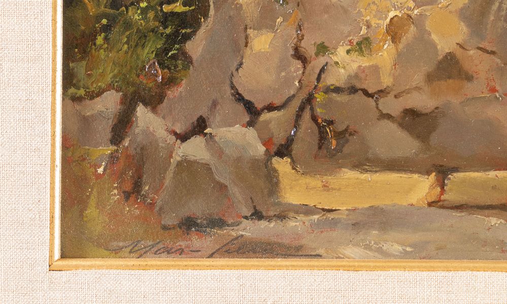 MARSILLA (XX secolo) "Lungo il Savena", 1928. Olio su faesite. Cm 15x21. Opera firmata in bassa a sinistra Marsilla. Al retro opera firmata, datata e intitolata Marsilla, 1928, Lungo il Savena.