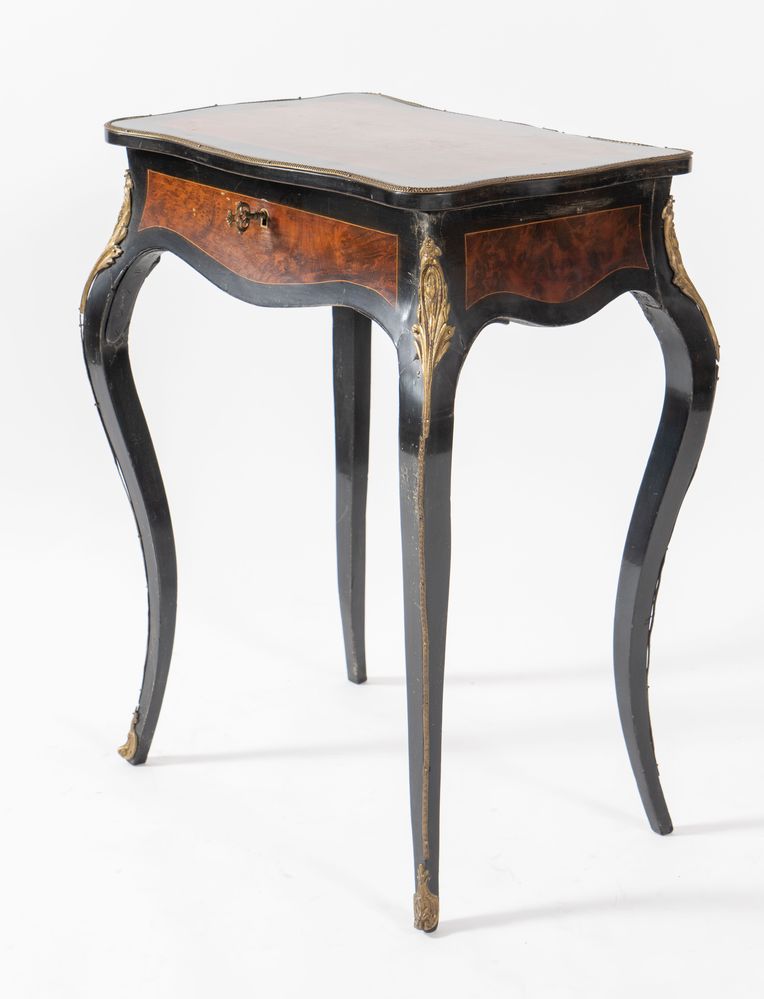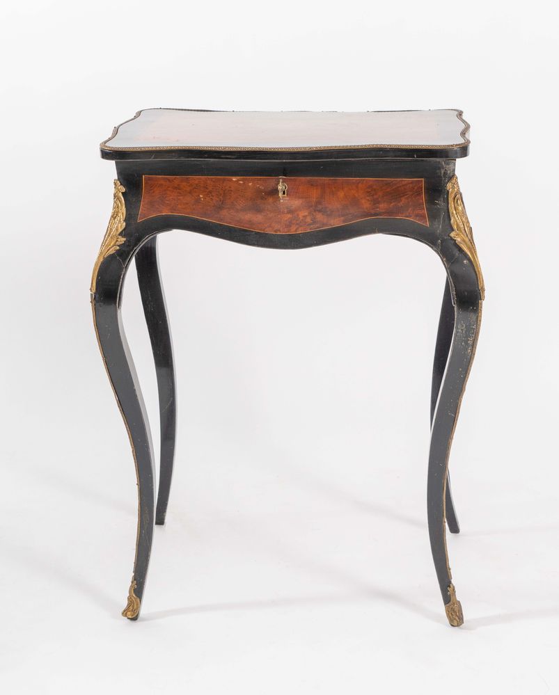 Tavolino da lavoro Napoleone III lastronato in legno ebanizzato con riserve...
