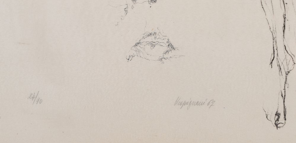 RENZO VESPIGNANI (Roma 1924 - 2001) "Senza titolo", 1967. Litografia su carta. Cm 63x50. Opera firmata e datata in basso al centro Vespignani 1967. Reca numeri di tiratura in basso a sinistra 24/90.