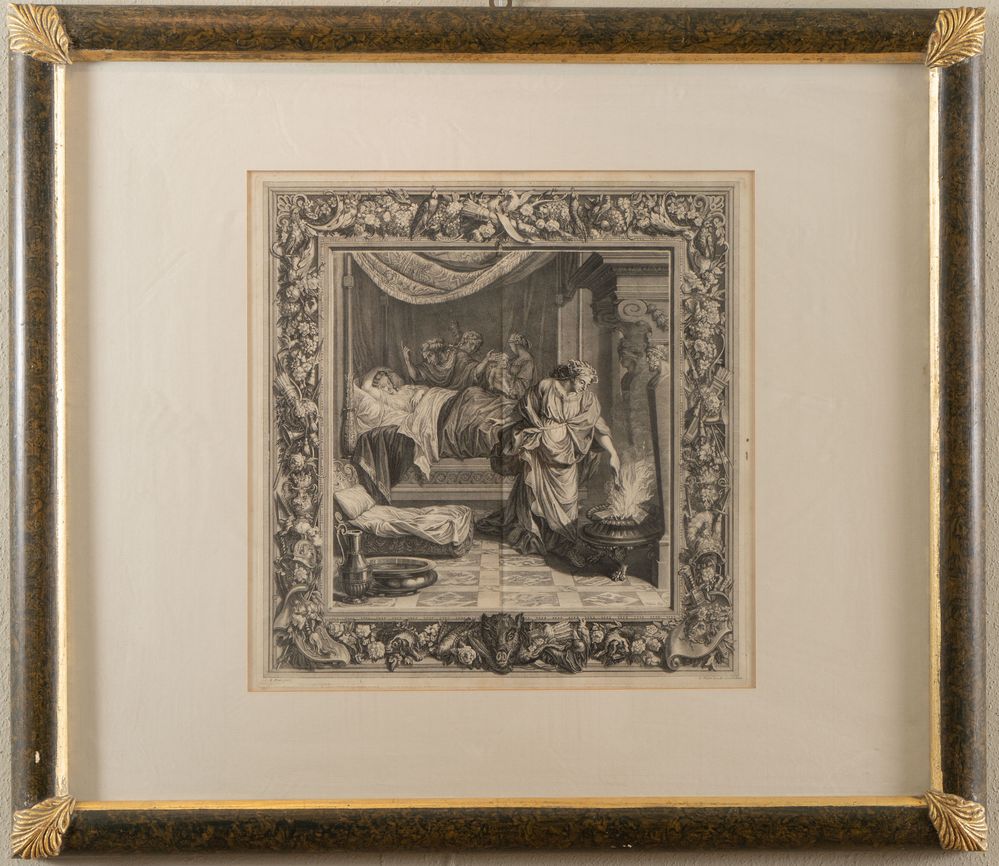 Lotto composto da otto antiche stampe raffiguranti le storie di Meleagro dai...