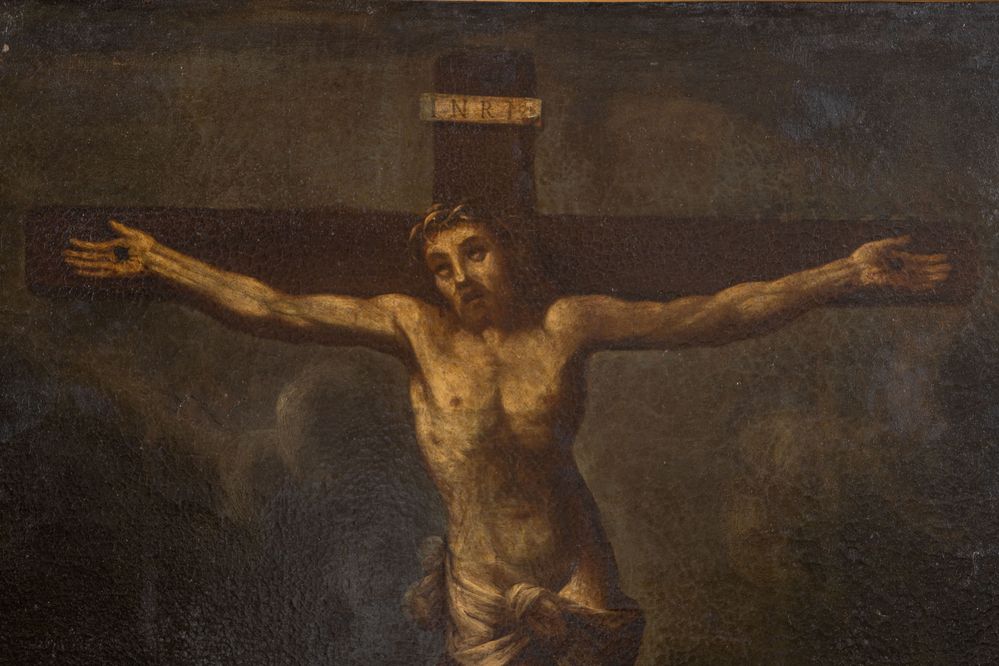 Lot 282 | Maestro del XVII secolo. "Crocifissione". Olio su tela. Cm 96x76.