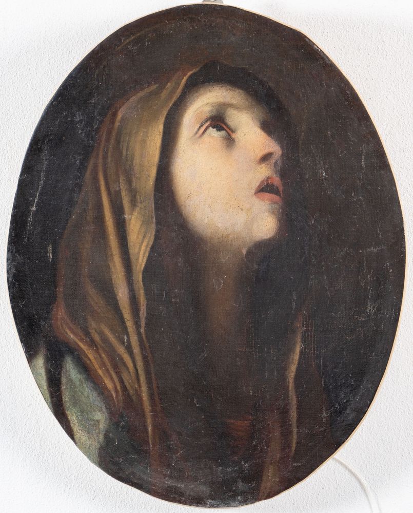 Maestro del XVII secolo "Madonna addolorata". Olio su tela. Cm 49x39. (restauri e rifacimenti)