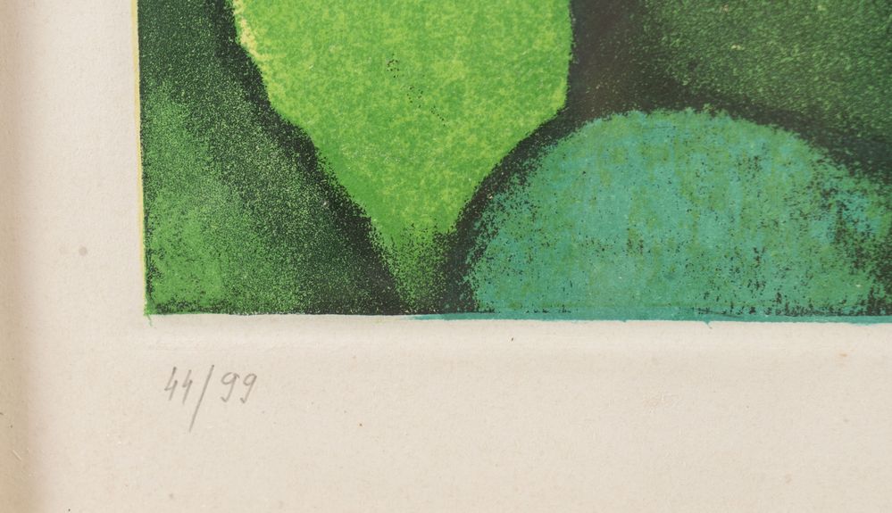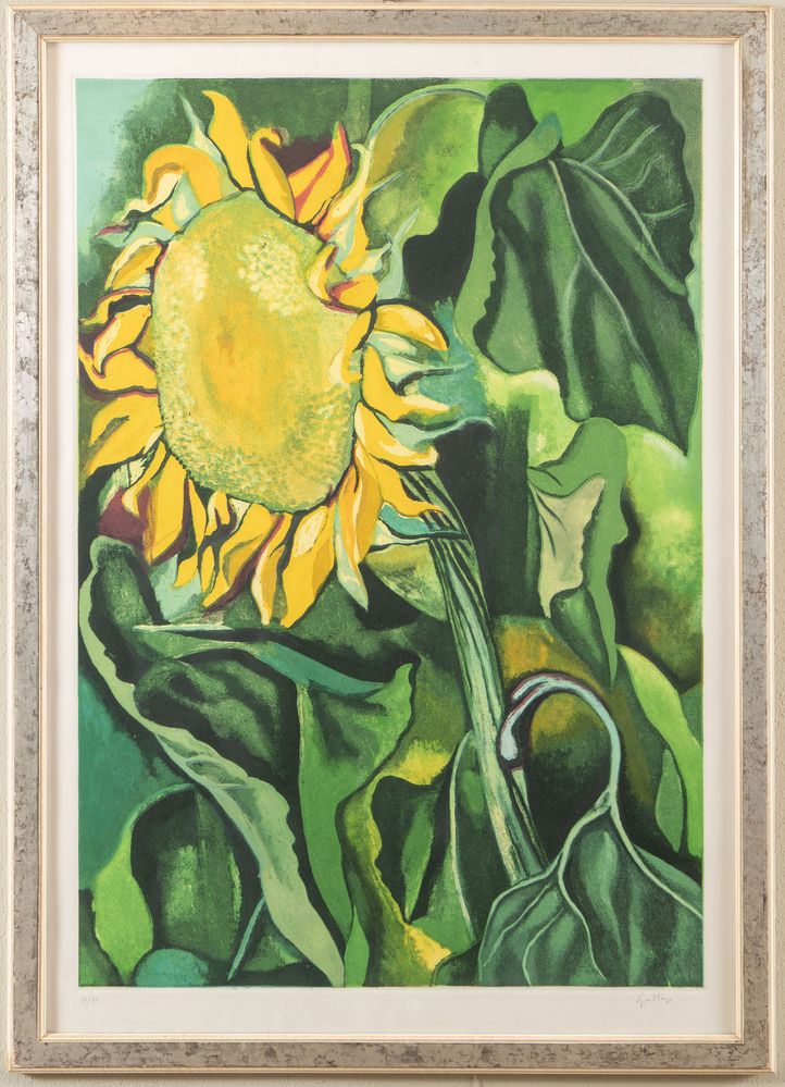 RENATO GUTTUSO (Bagheria 1911 - Roma 1987) "Girasole". Litografia a colori su carta. Foglio: cm 95x68. Opera firmata in basso a destra Guttuso. Reca numeri di tiratura in basso a sinistra 44/99.