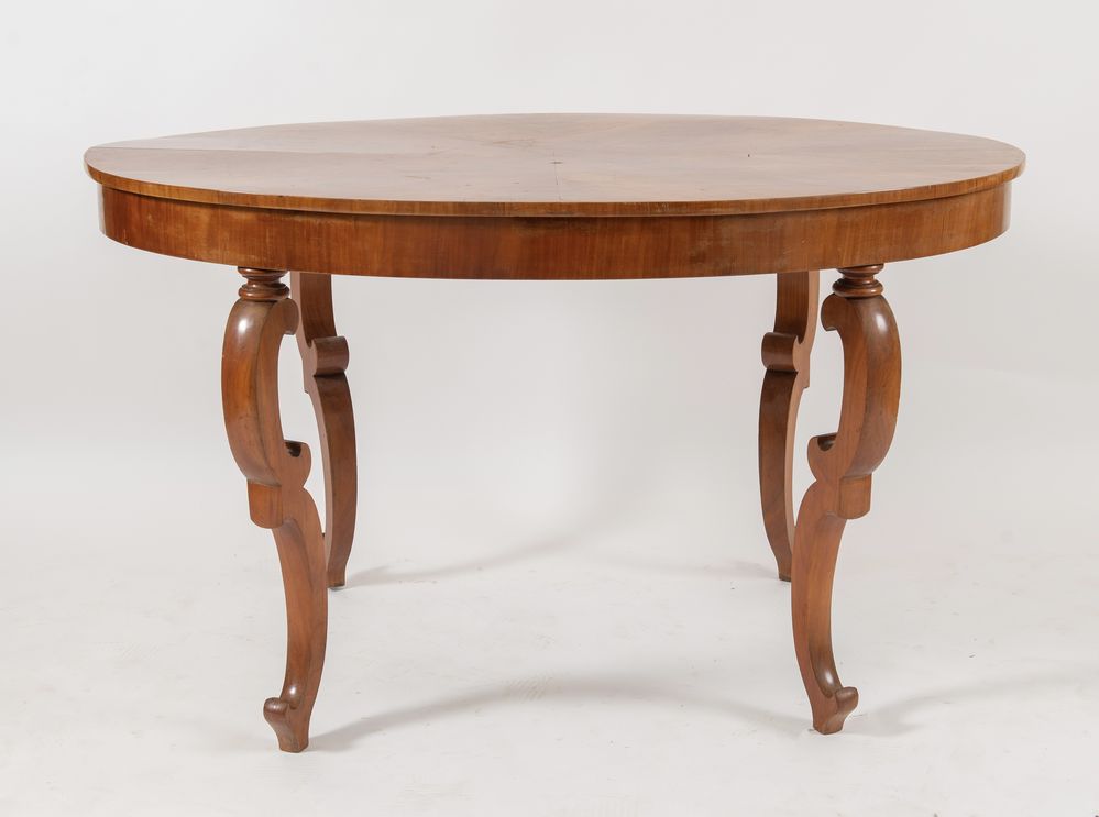Lot 383 | Tavolo ovale, lastronato in ciliegio. Reca sostegni mistilinei. Emilia, metà...