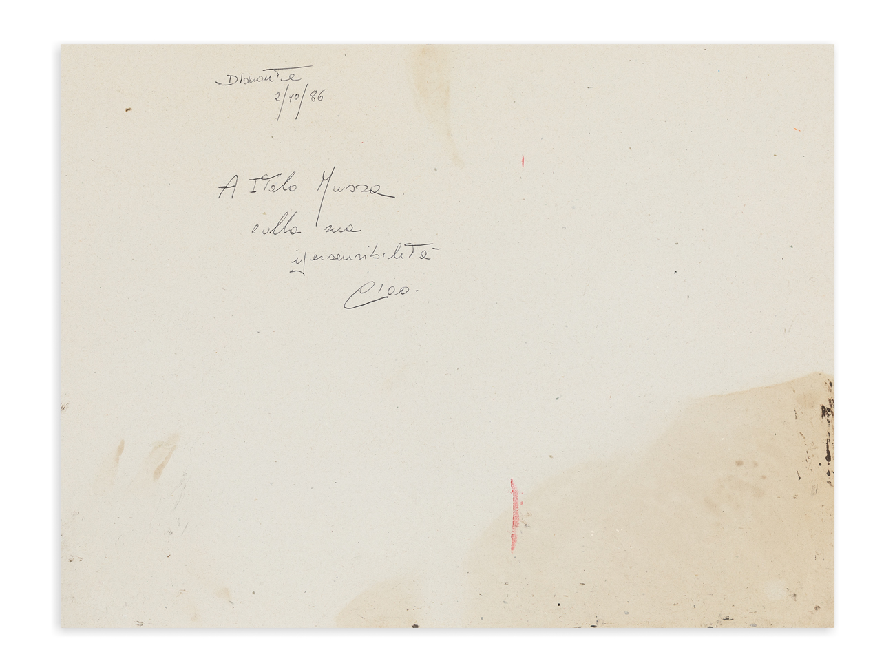 Firma indecifrata, datazione e dedica ad personam al retro