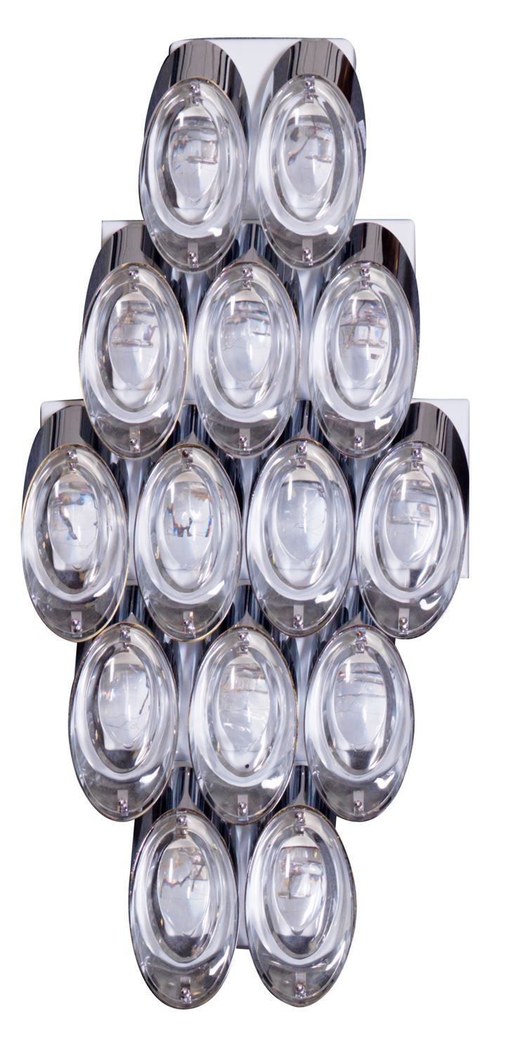 Grande applique a quattordici luci in metallo con diffusori in lenti di cristallo stampato