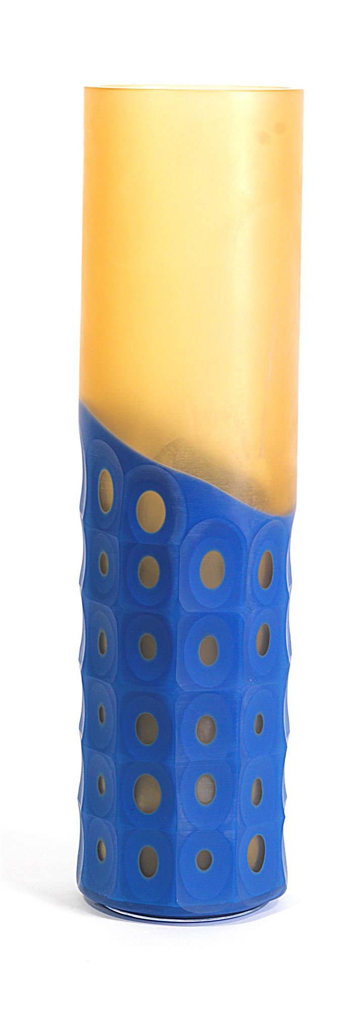 DORDONI RODOLFO Cammeo Vaso in vetro ambra parzialmente incamiciato blu e...
