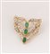 Spilla-ciondolo in oro giallo 18k realizzata a stemma e decorata con tre smeraldi ovali e tempestata di diamanti. Gr 14.
