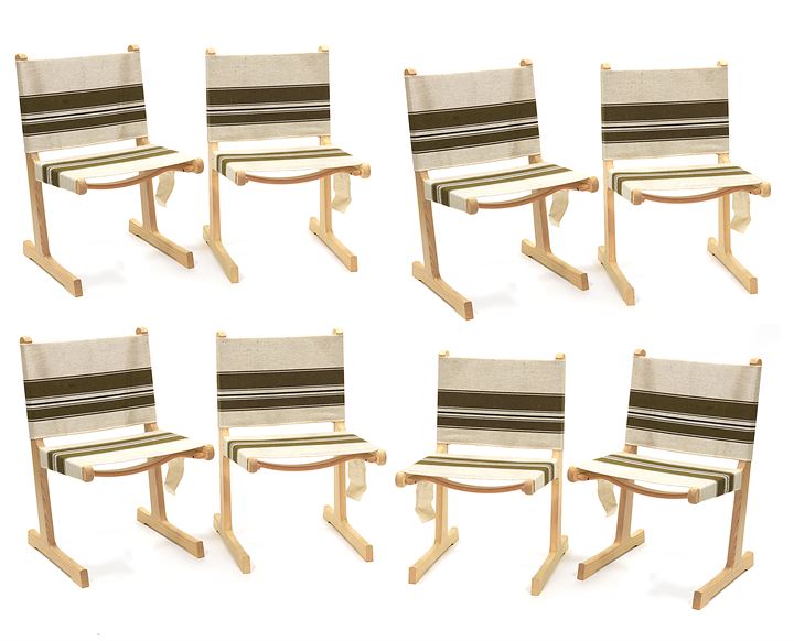 DITTE & ADRIAN HEATH Sei sedie in frassino e tessuto. Targhetta metallica del...