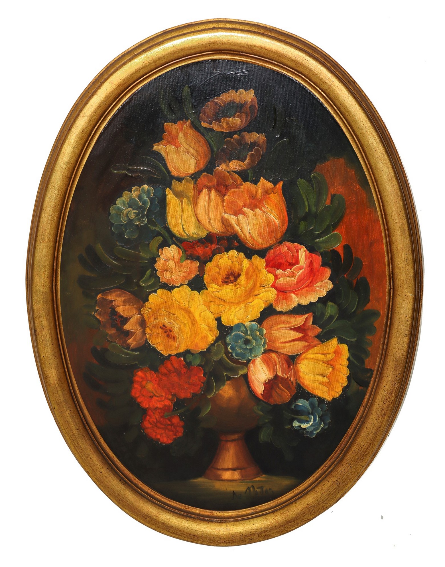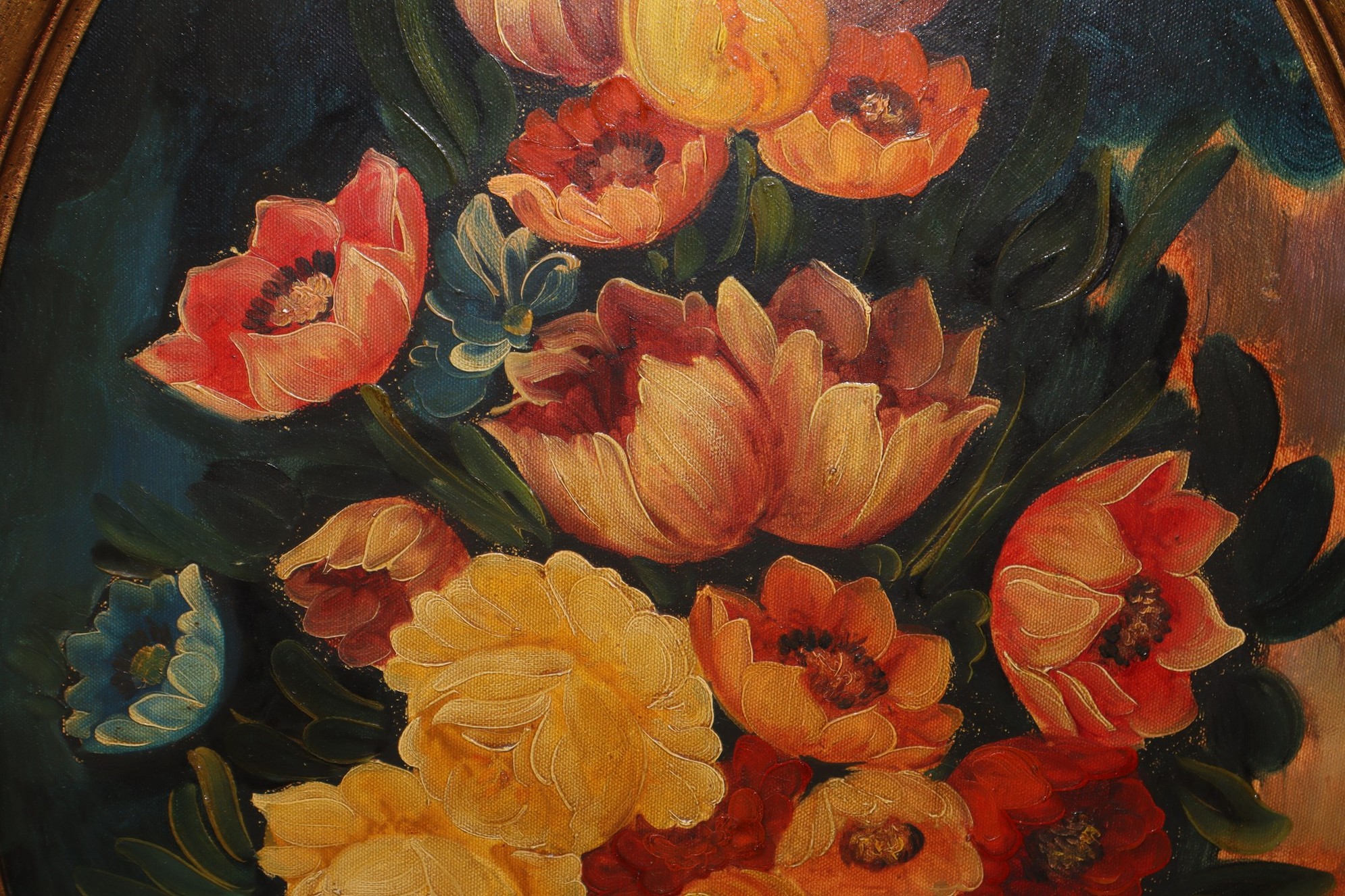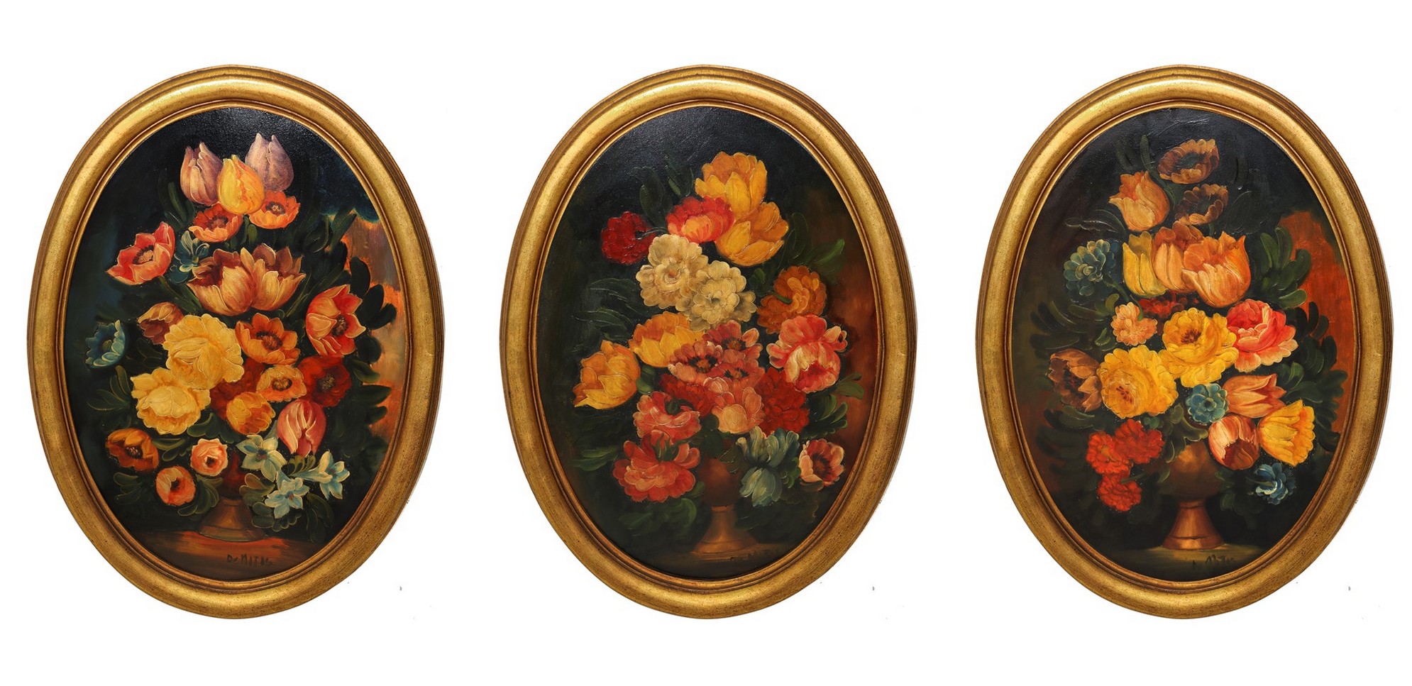 Trittico di nature morte di fiori cm 70 x cm 49 Dipinto ovale, olio su tela