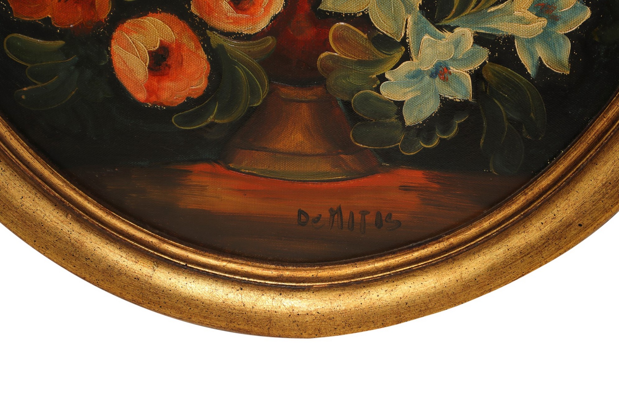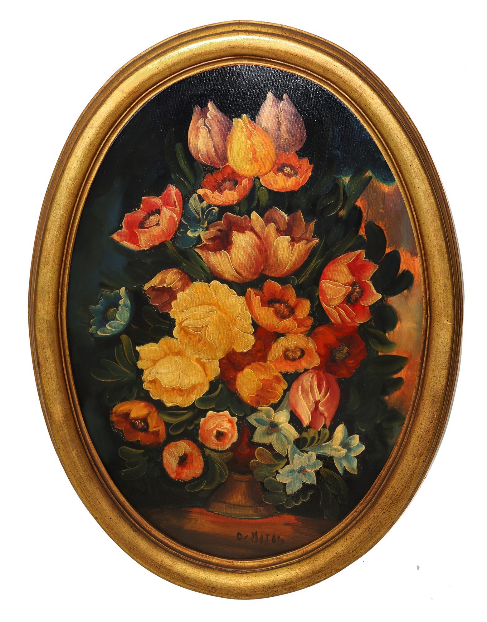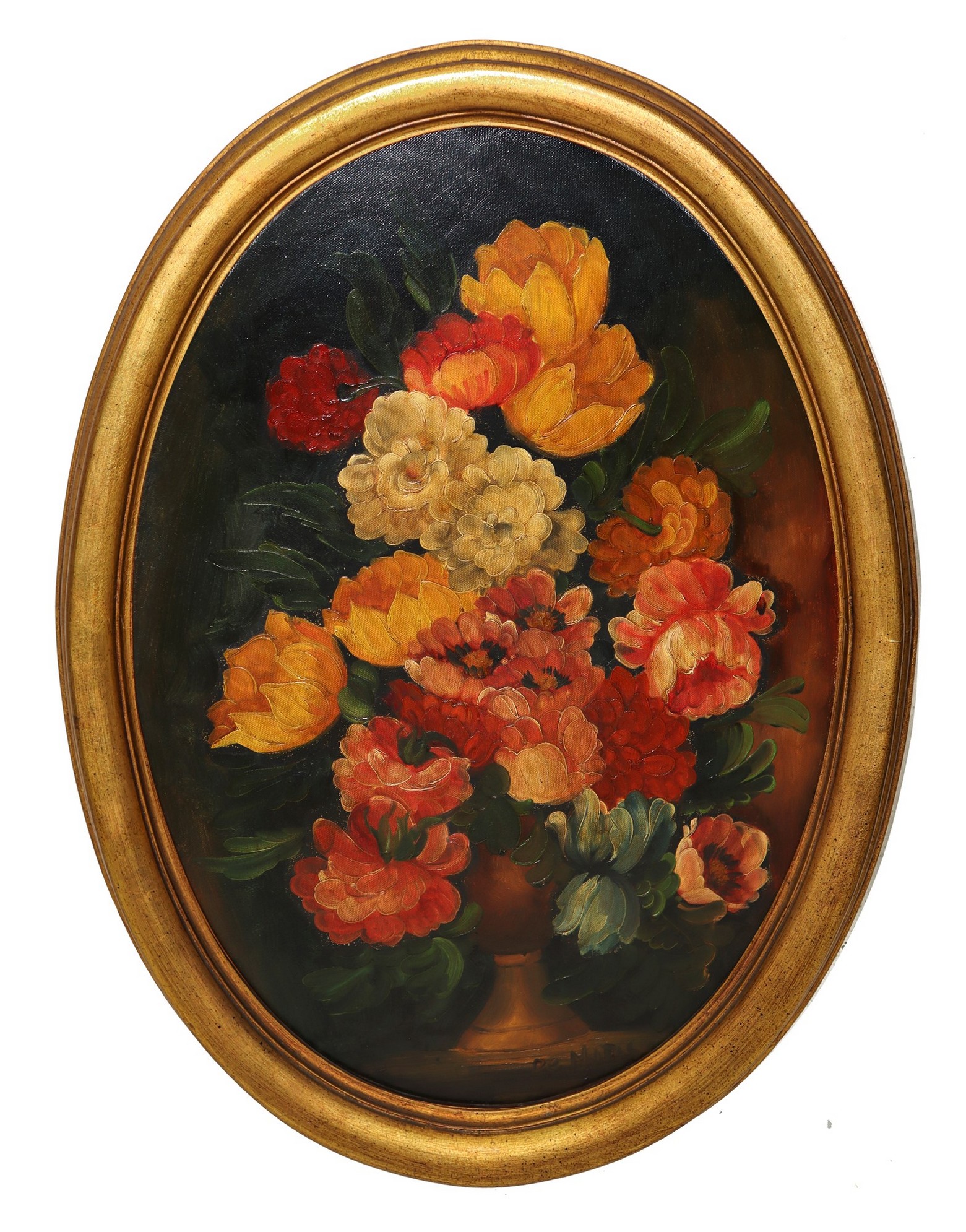 Trittico di nature morte di fiori cm 70 x cm 49 Dipinto ovale, olio su tela