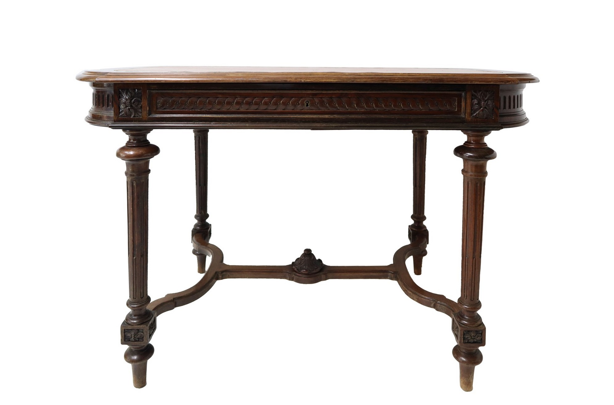 Tavolino ovale con cassetto e piano in pelle, Late 19th century