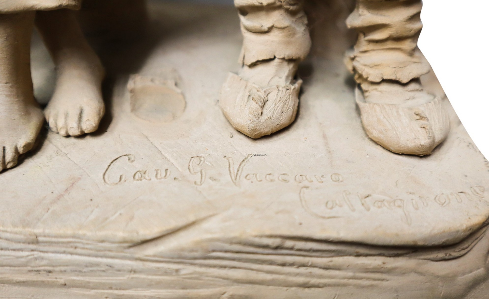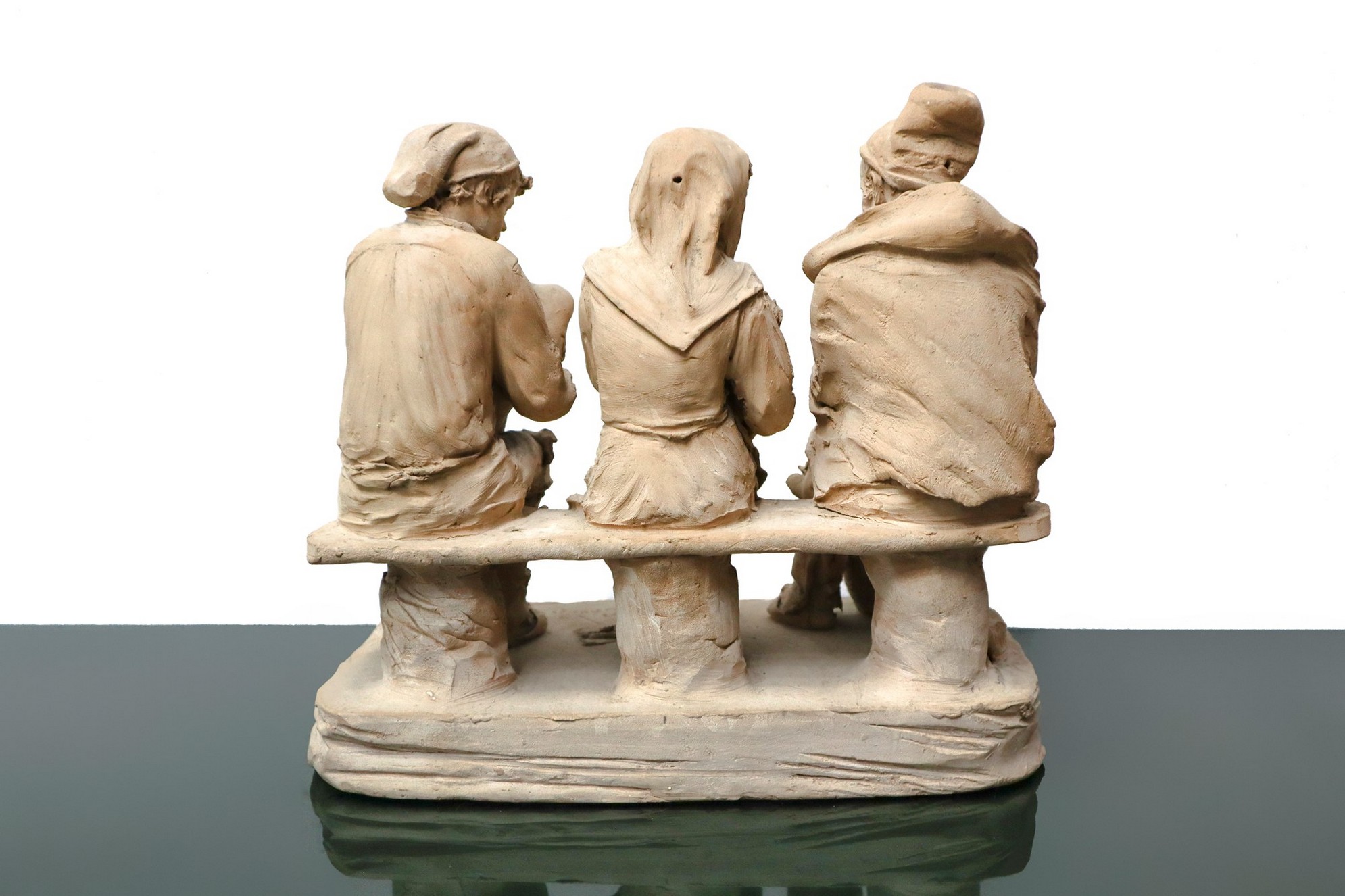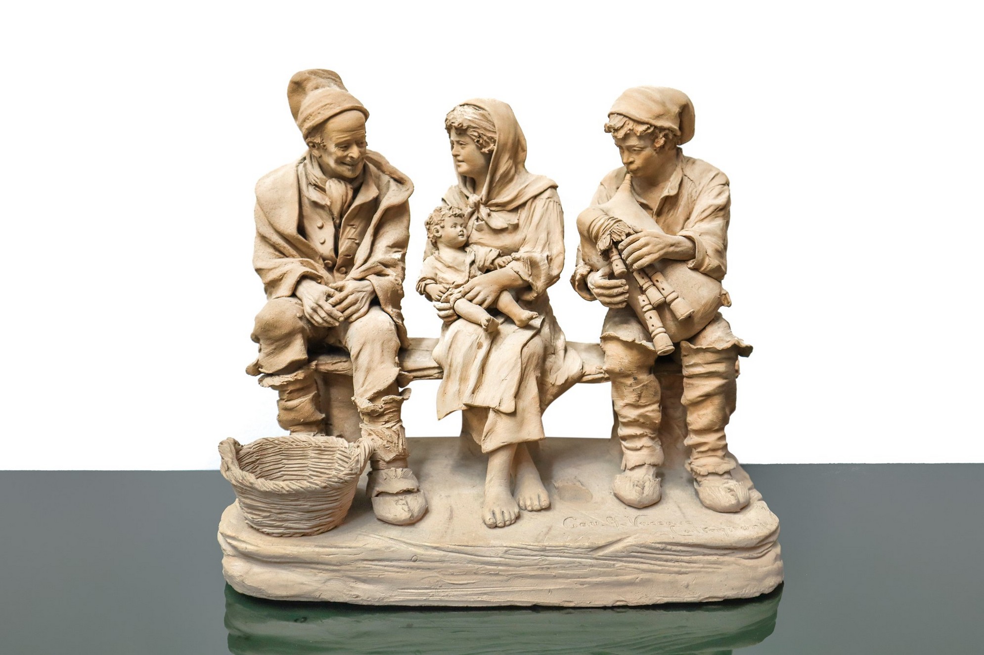 Giacomo Vaccaro (Caltagirone 1847-1931) - Tre figurine in terracotta monocroma cm 30 x cm 31 x cm 16 Firmato alla base Cav.G.Vaccaro Caltagirone.