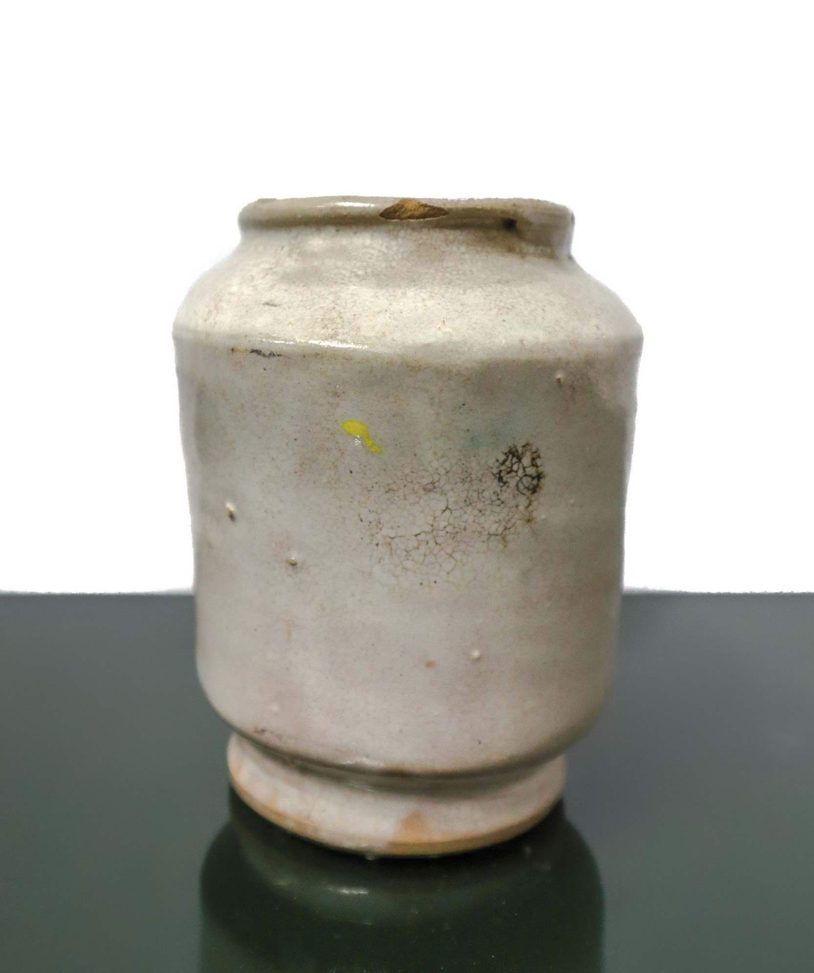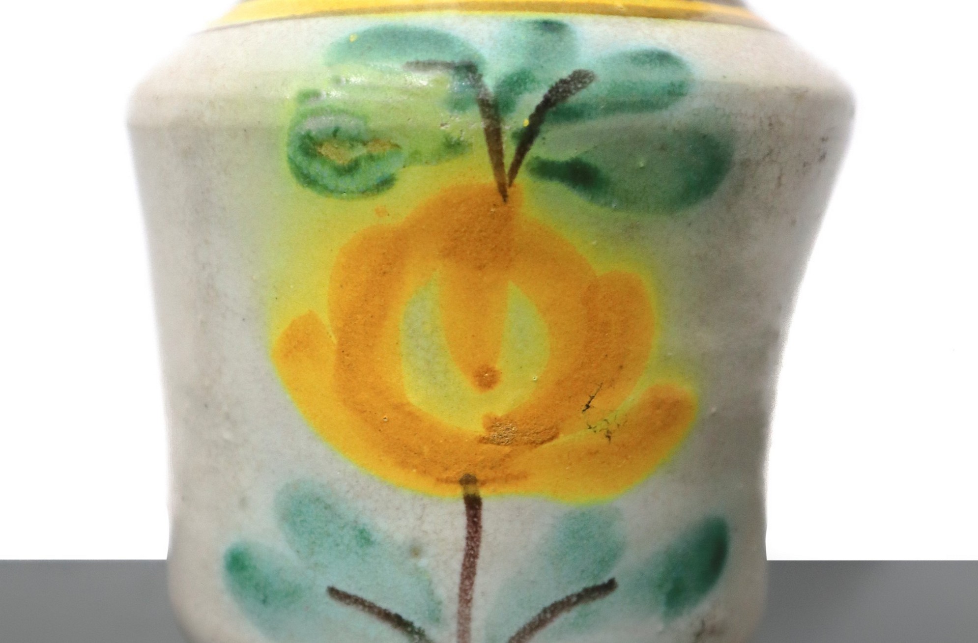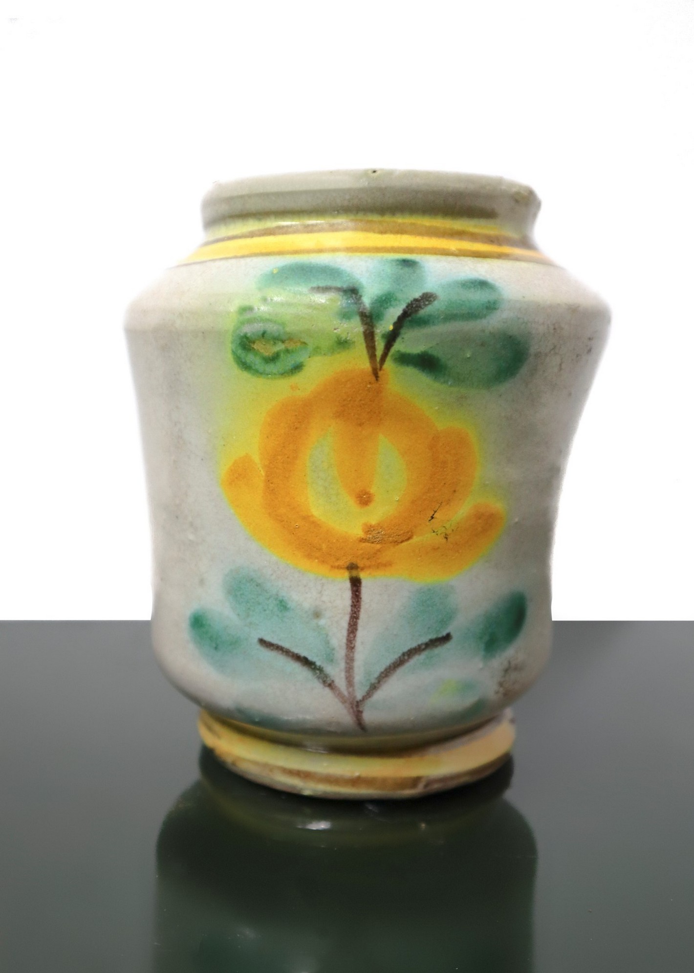 Piccola maiolica di Caltagirone, Early 20th century cm 14 Cilindro con foglie e fiori verdi, giallo e manganese.
