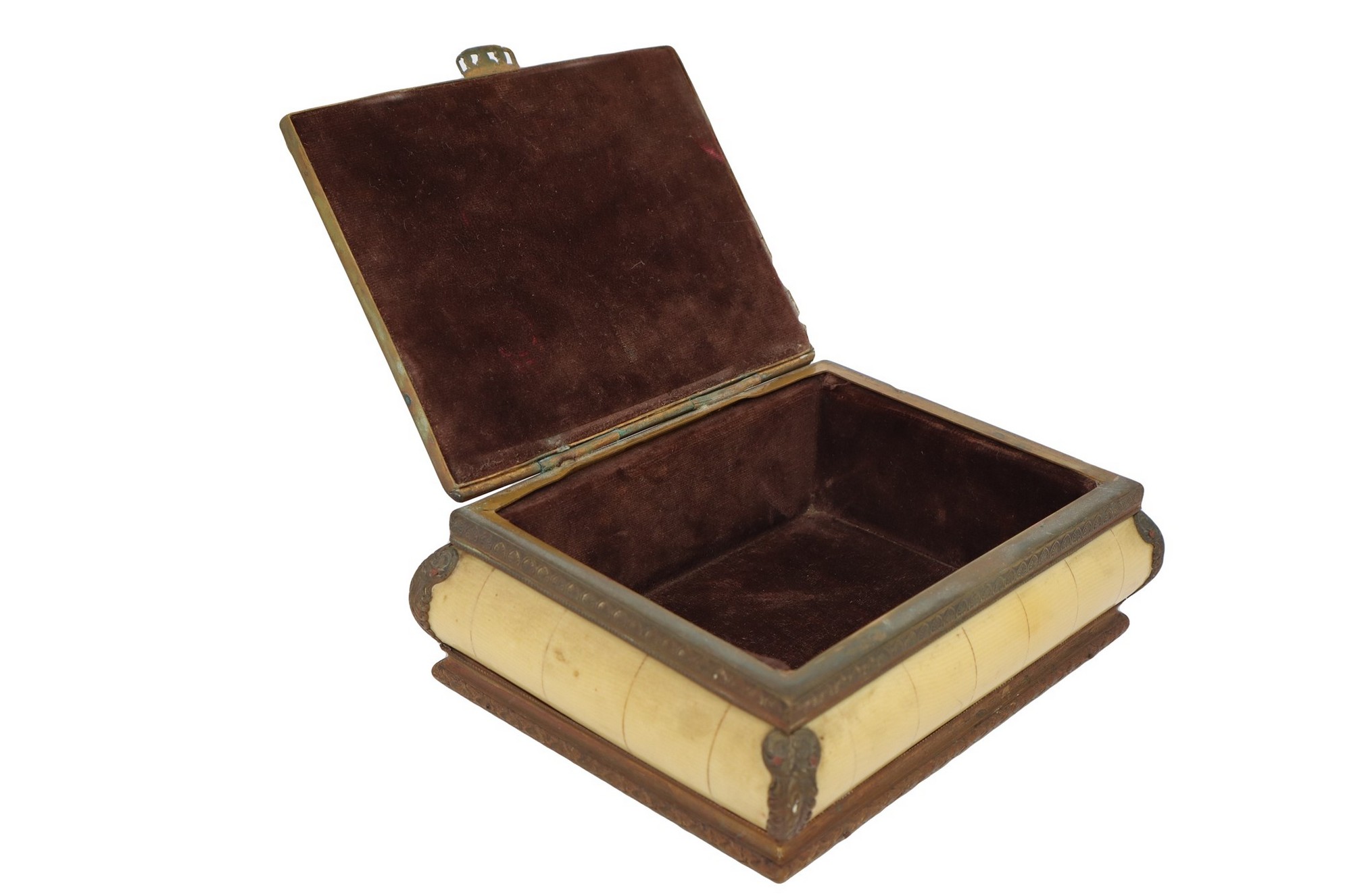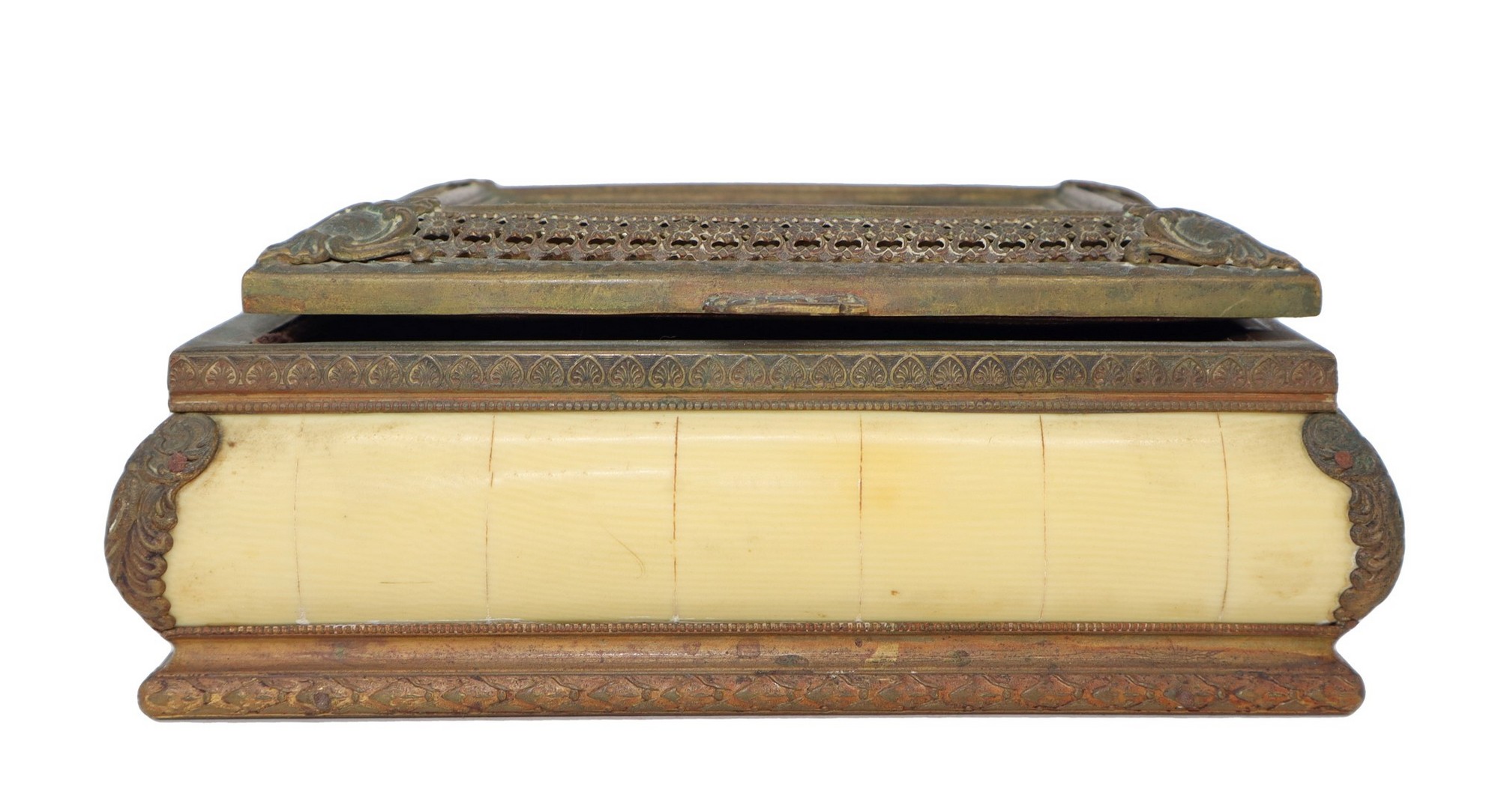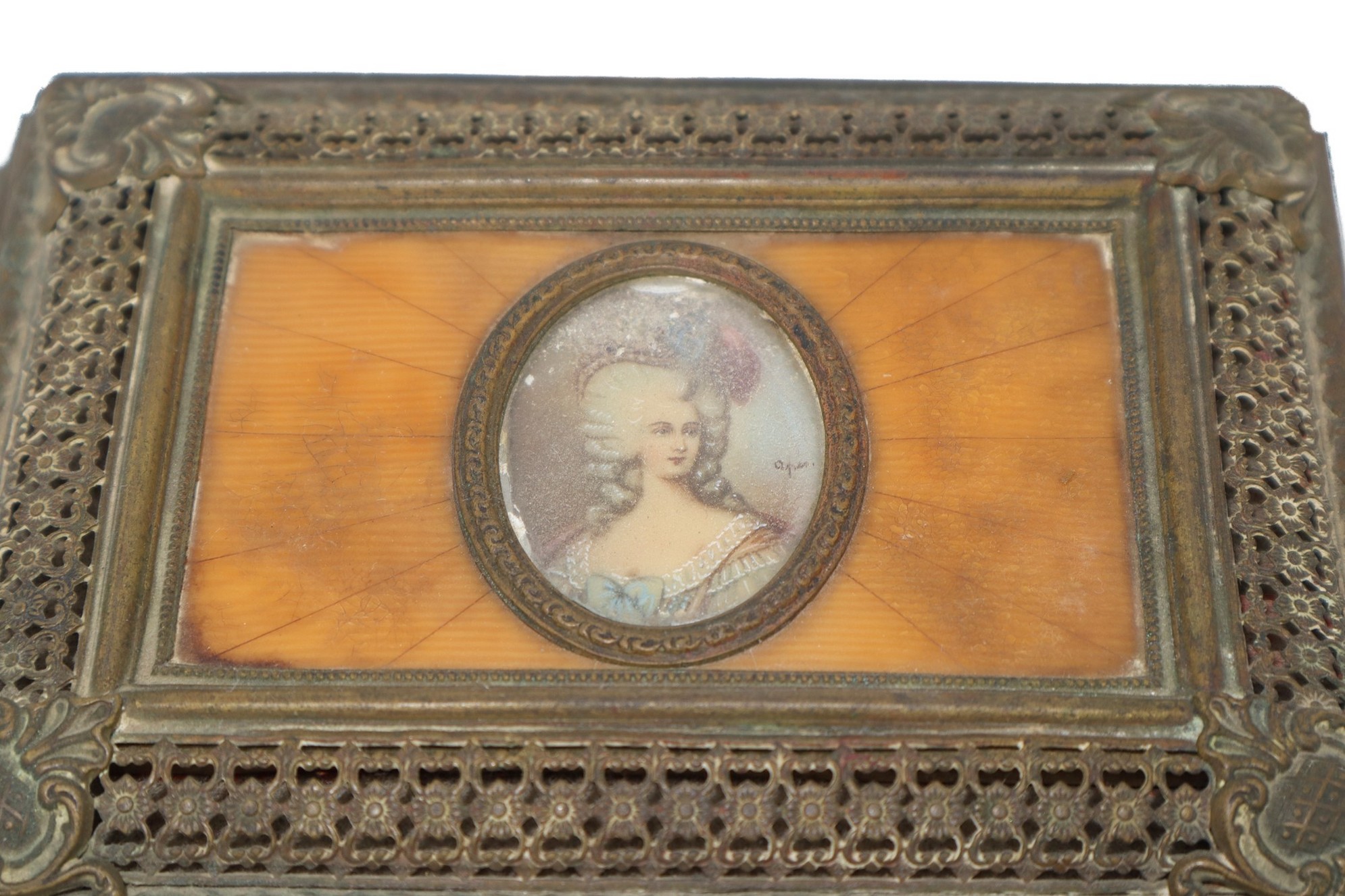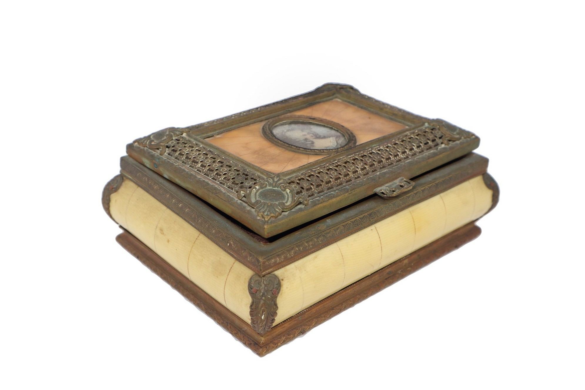 Scatola in ottone ed avorio cm 16 x cm 15 x cm 11,5 Al coperchio miniatura della Regina Antonietta