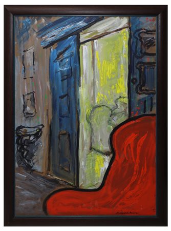 Maria Leonardi Pennisi (Acireale) - La Poltrona rossa Cm 99.6x69.8, in cornice cm 81x111 acrilico su masonite