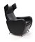 Poltrona reclinabile con rivestimento in simil pelle nera.