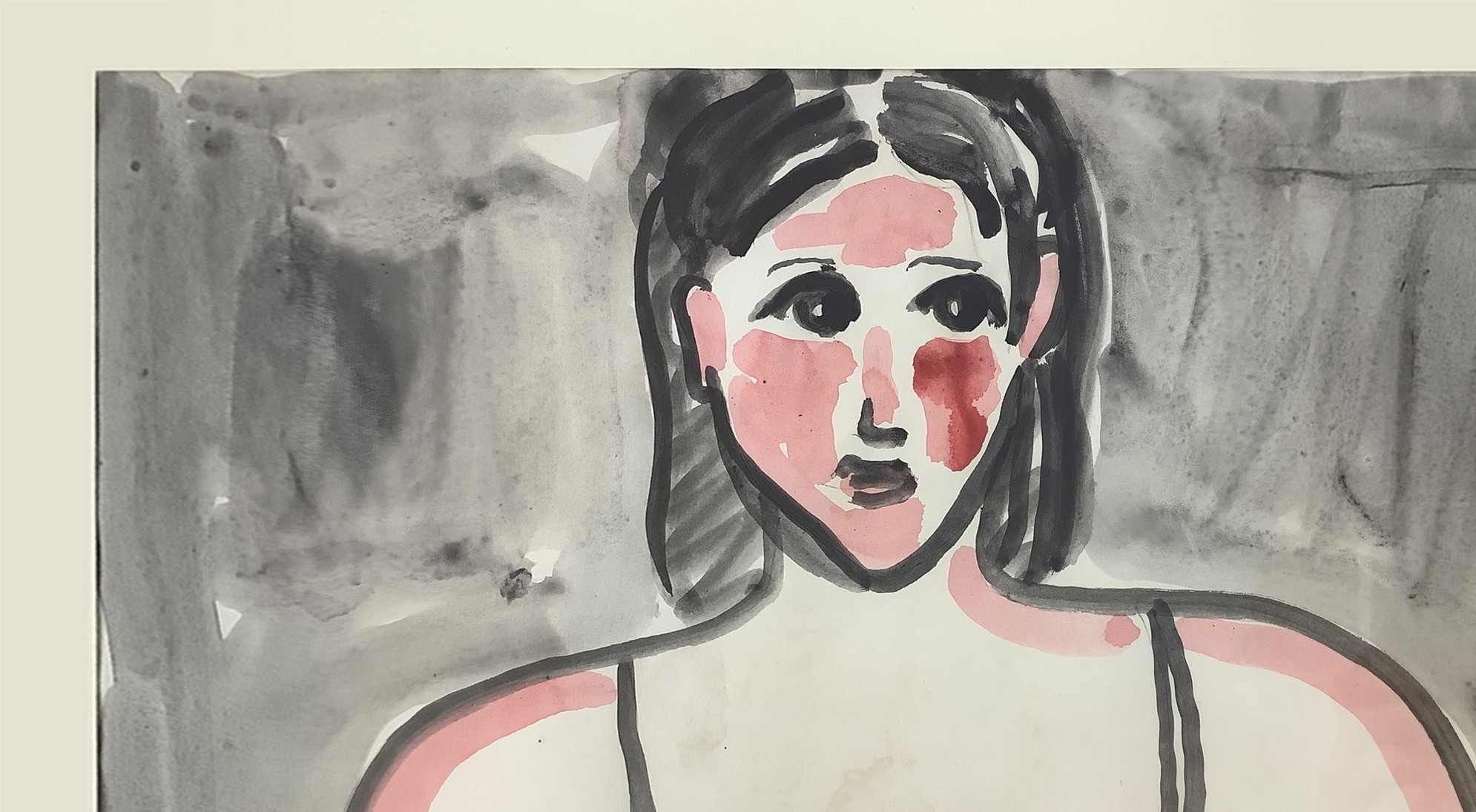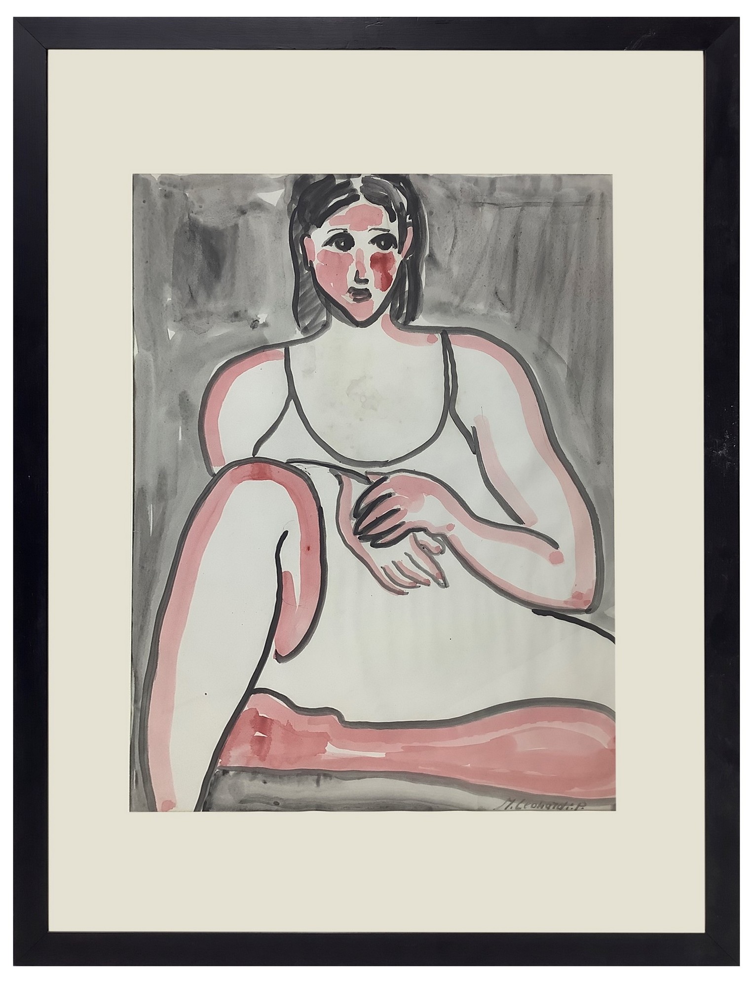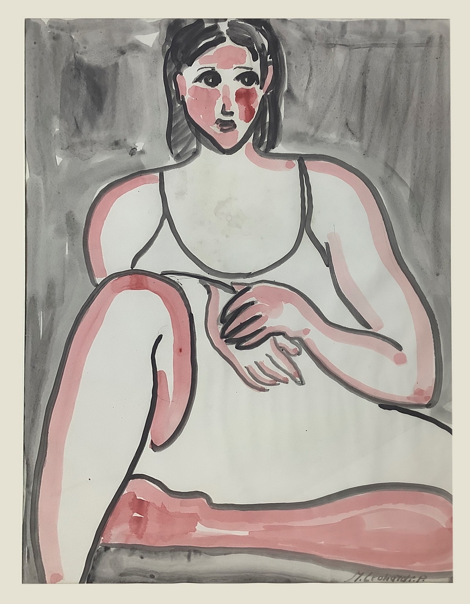 Maria Leonardi Pennisi (Acireale) - Ragazza con capelli corti e neri in cornice h cm 81x61; senza h cm 55x40 guache