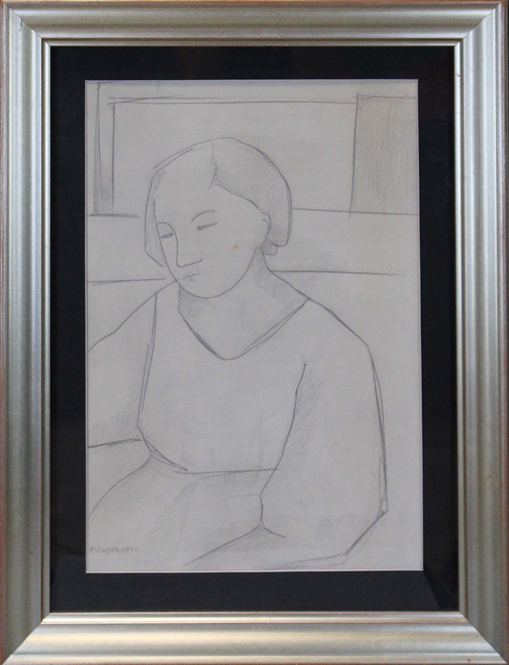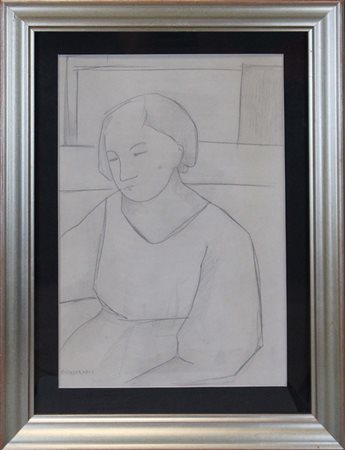 FELICE CASORATI, "Figura", Matita su carta applicata su cartone, Dim. 48,3x33,4, Al fronte: firmata in basso a sinistra, Opera archiviata presso Archivio Casorati, Opera con cornice