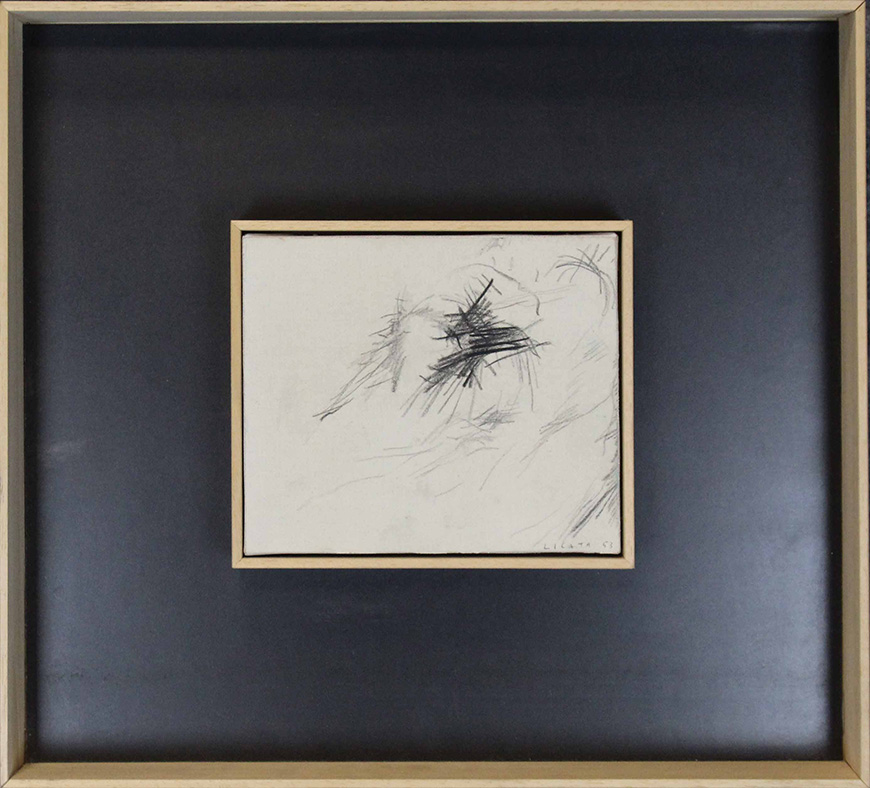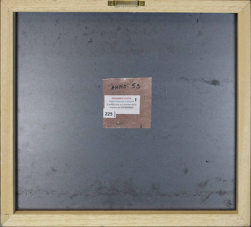 RICCARDO LICATA, Senza titolo, 1953, Tecnica mista su carta intelata, Dim. 14,5x16,5, Al fronte: firma e data in basso a destra, Opera esposta a Mestre e pubblicata sul Volume della mostra del 27/10/2012, Opera con cornice