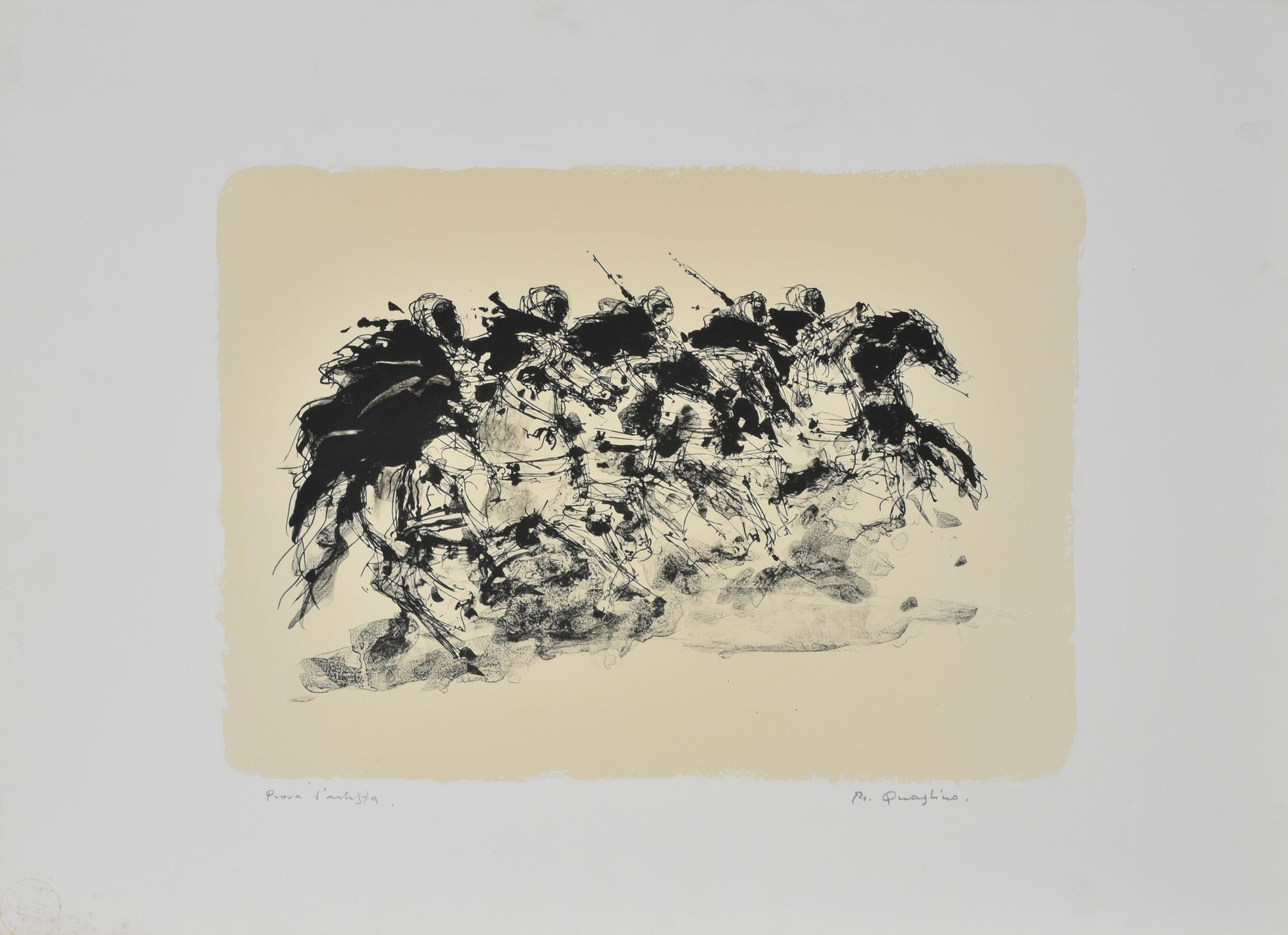Massimo Quaglino LA CARICA DEI CAVALIERI BERBERI litografia su carta, cm...