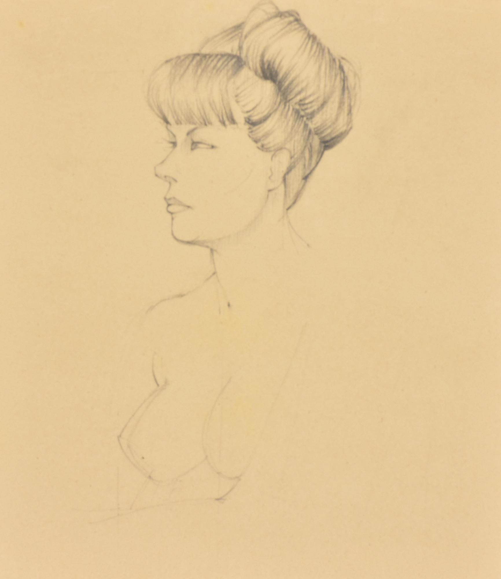 Lot 17 | Raffaele Ponte Corvo RITRATTO FEMMINILE matita su carta, cm 27x24 retro:...