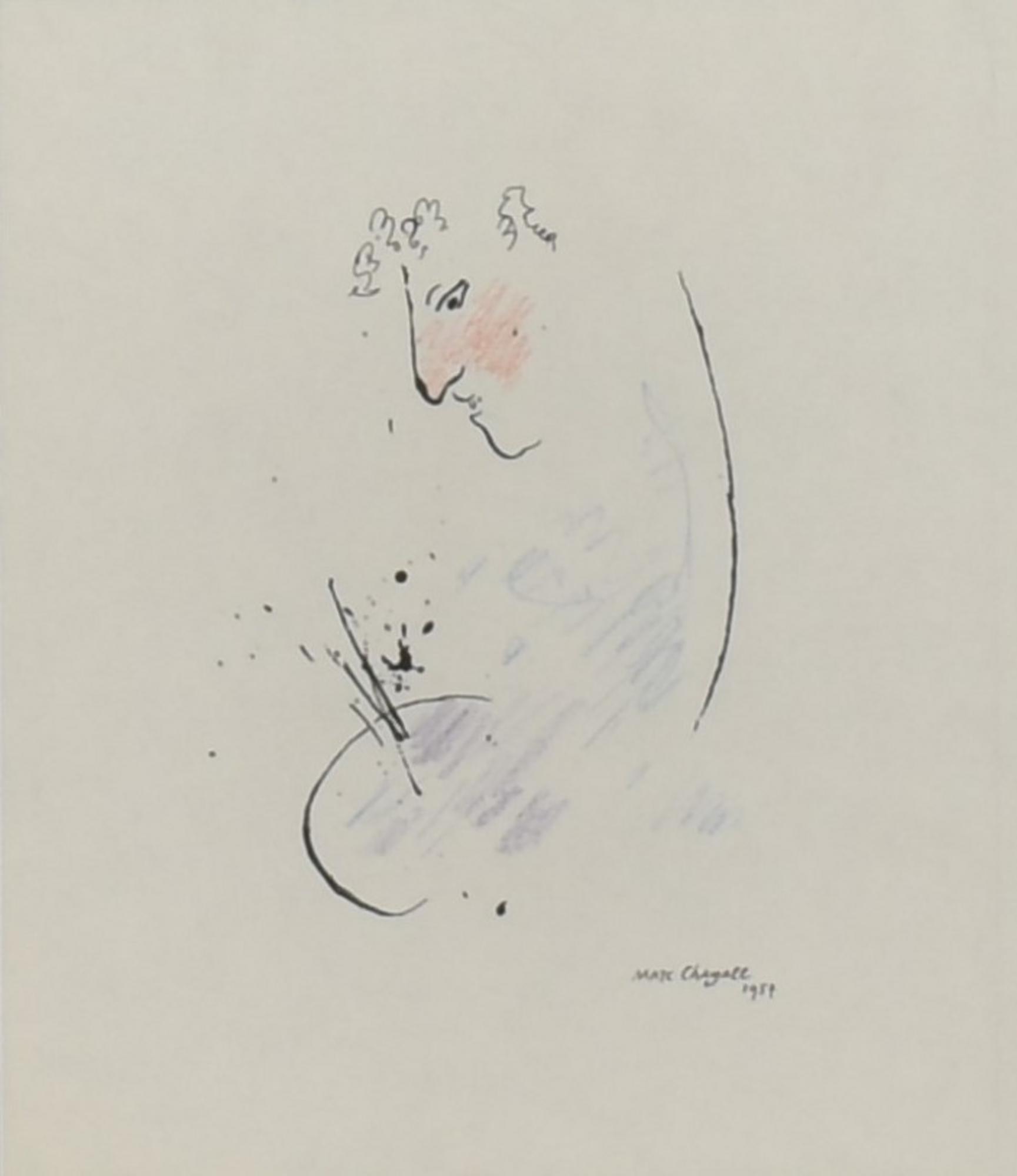 Ignoto A firma Marc Chagal VOLTO DI PROFILO china e matita su carta, cm 21x18...
