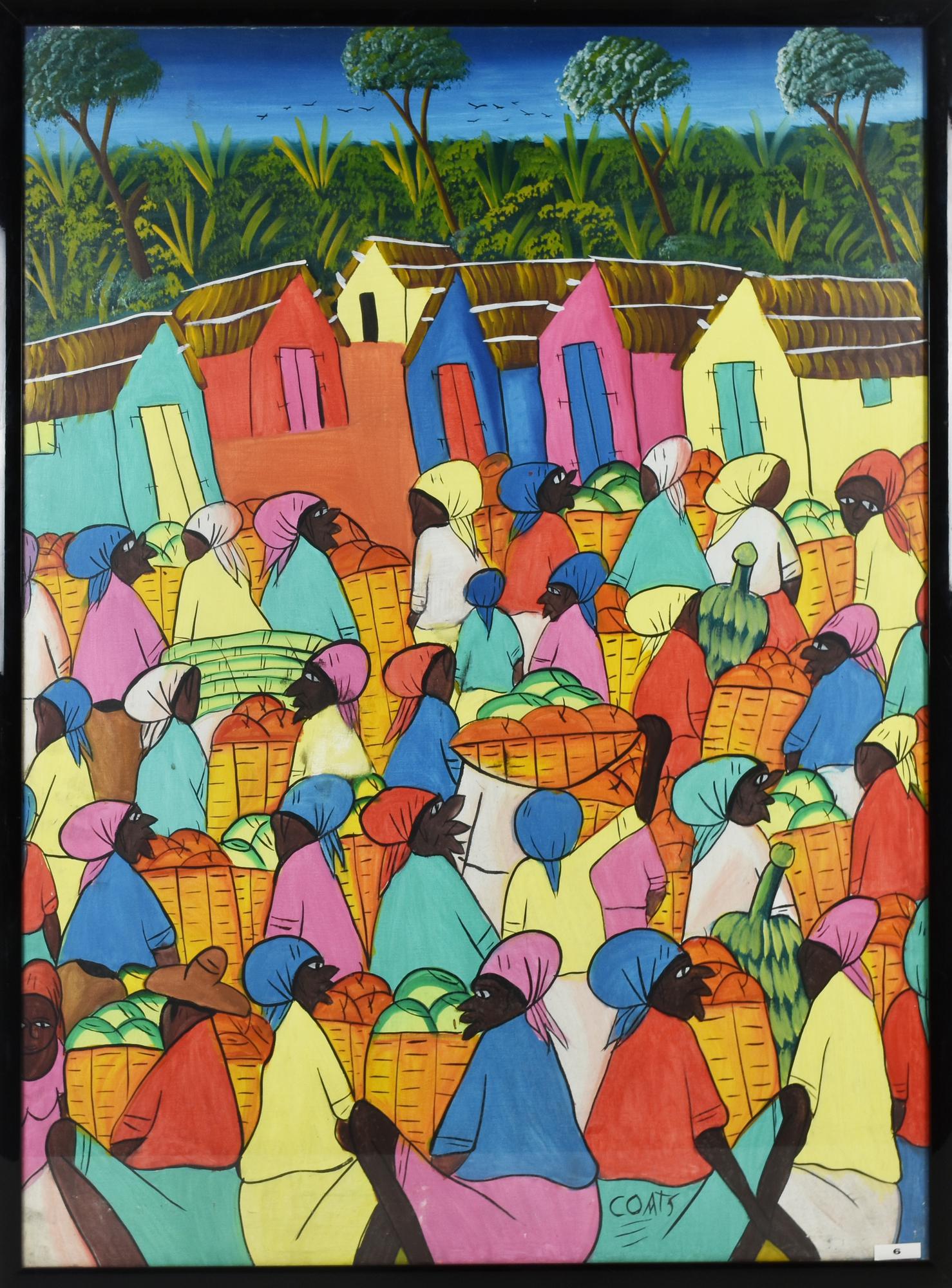 Coats MERCATO AFRICANO tempera su cartoncino, cm 100x75 firma IL PRESENTE...
