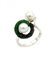 in argento 925 con perle rotonde imitazione, diametro mm 10, decorato su una delle volute con strass verdi e viola