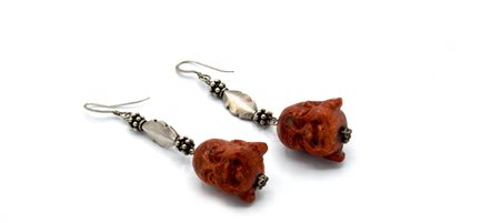 COPPIA DI ORECCHINI IN METALLO ARGENTATO CON PIETRE LAVORATE A TESTA DI BUDDA