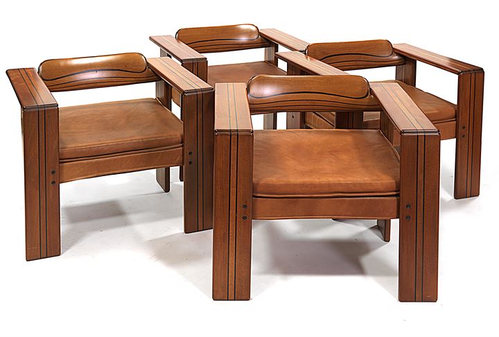 SCARPA AFRA E TOBIA Artona Quattro poltroncine in legno di noce stratificato...