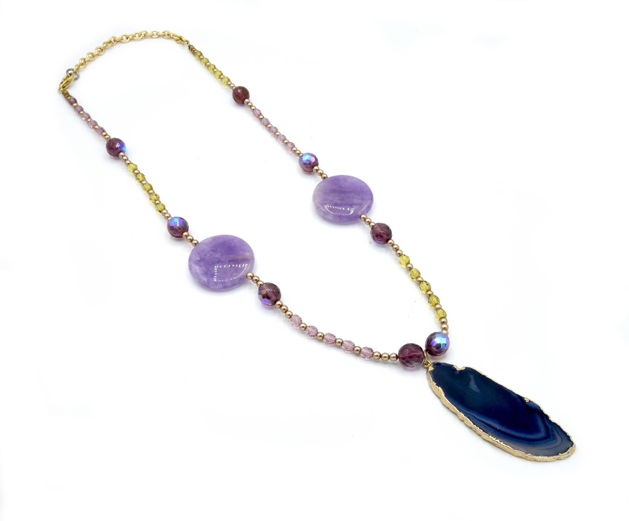 COLLANA CON AMETISTE E GRANDE PENDENTE IN PIETRA DURA