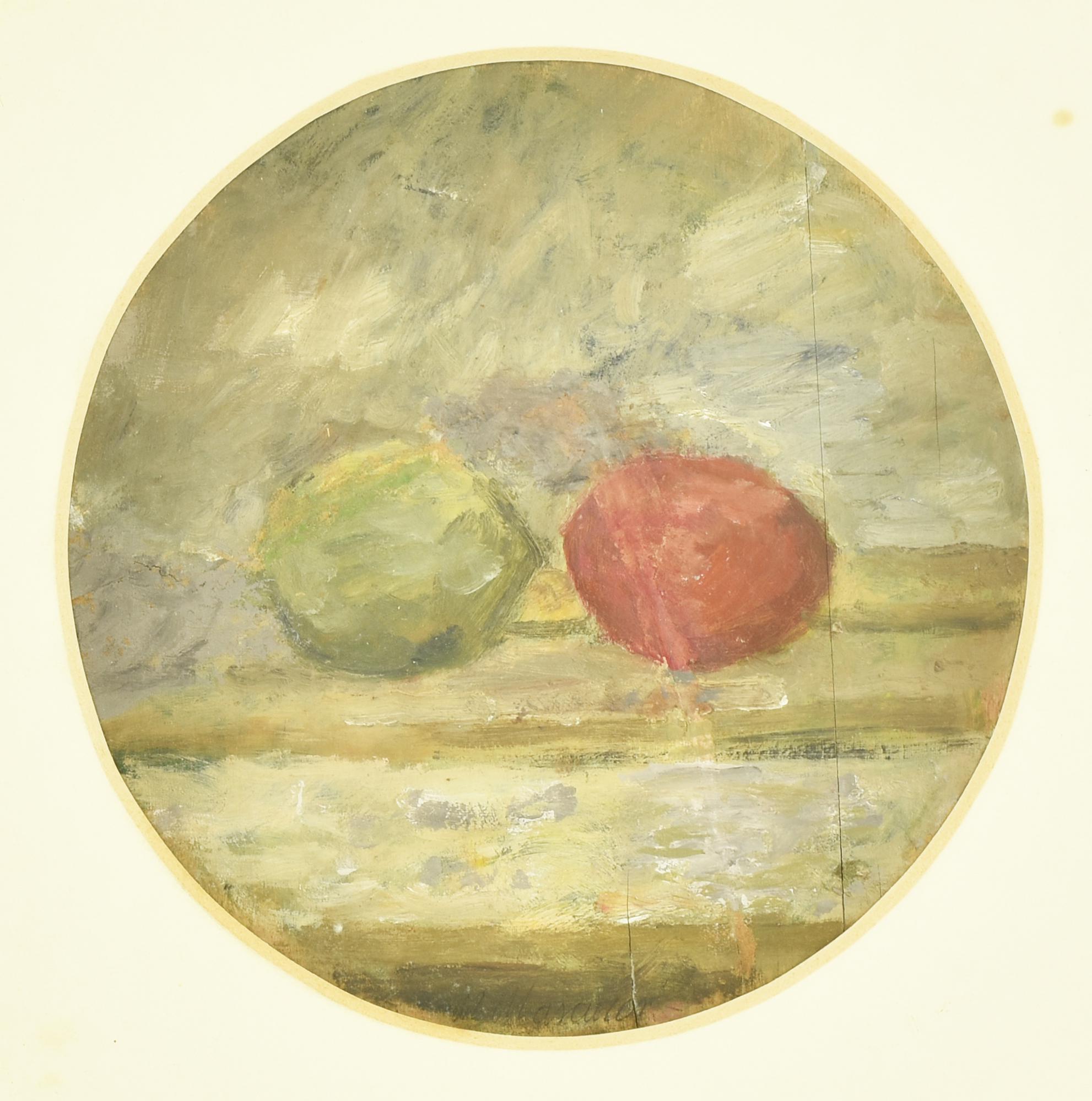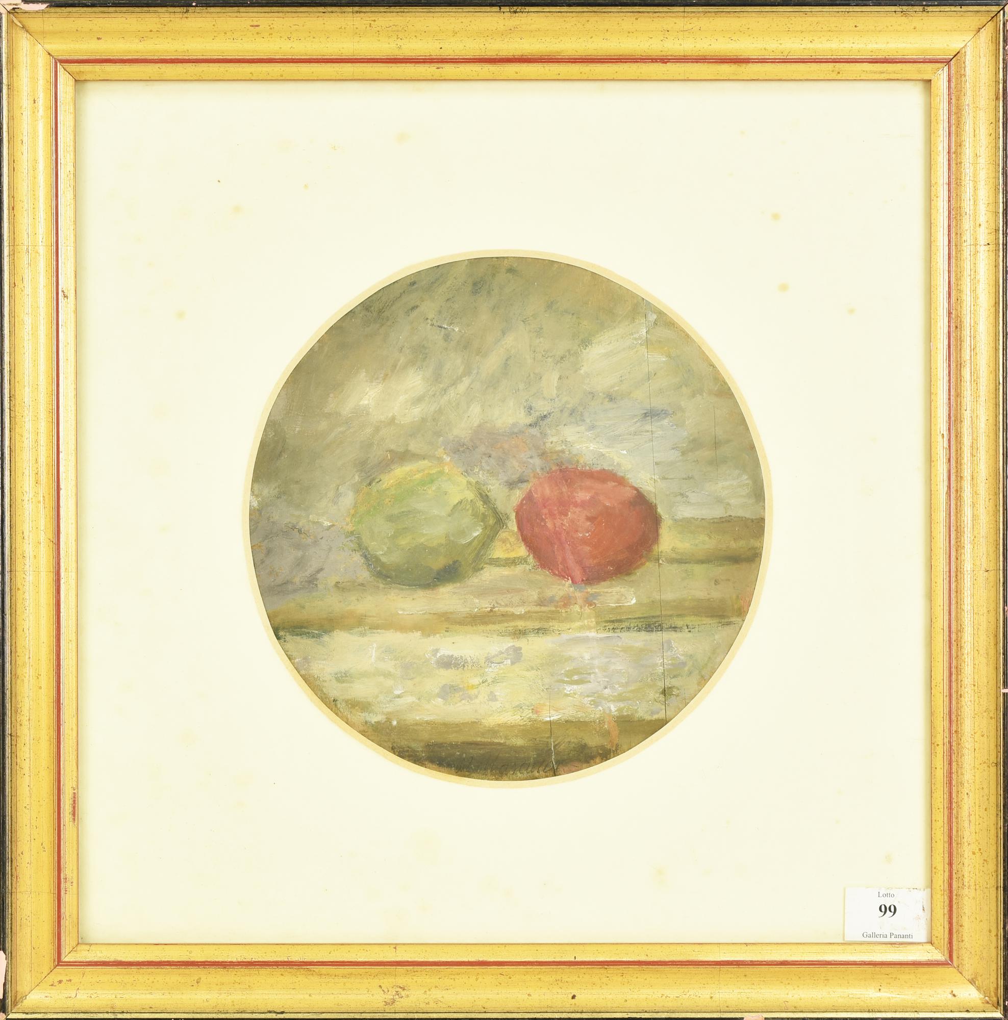 Mario Marcucci NATURA MORTA olio su tavola rotonda, diametro cm 23 firma...