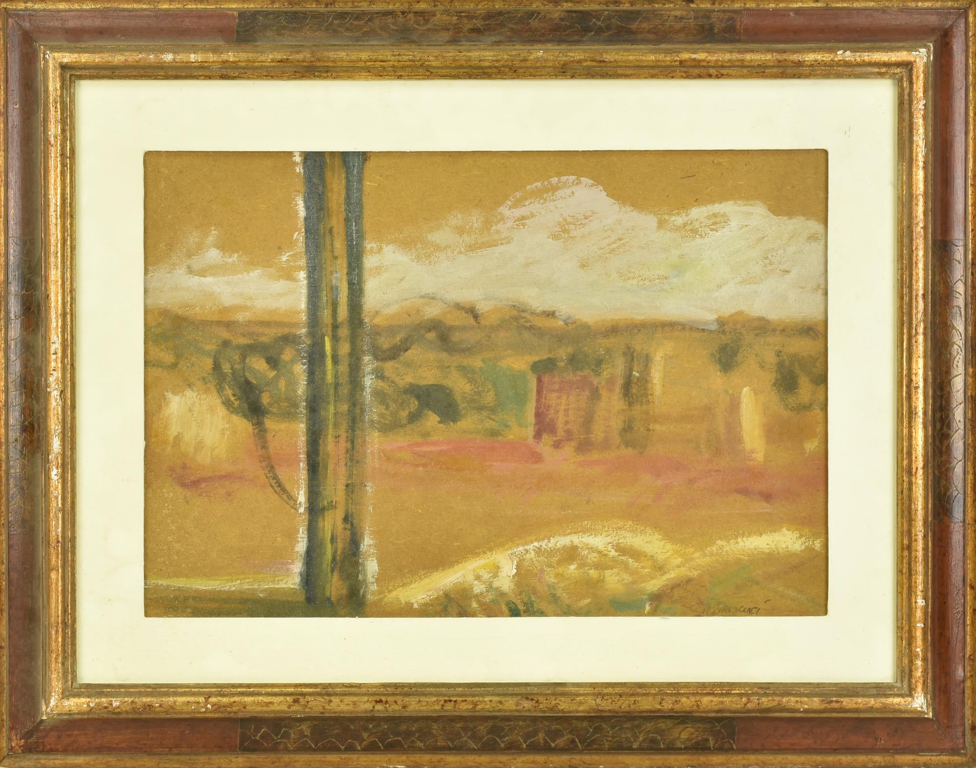 Mario Marcucci PAESAGGIO olio su carta gialla applicata a cartone, cm 29x42...