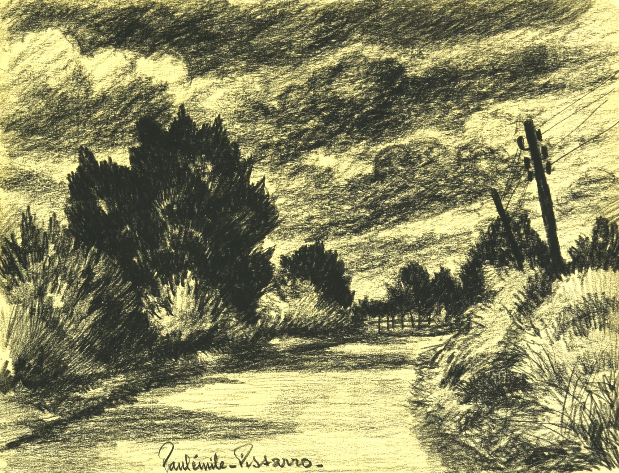Paul Emile Pissarro VEDUTA matita su carta, cm 24x31,5 firma