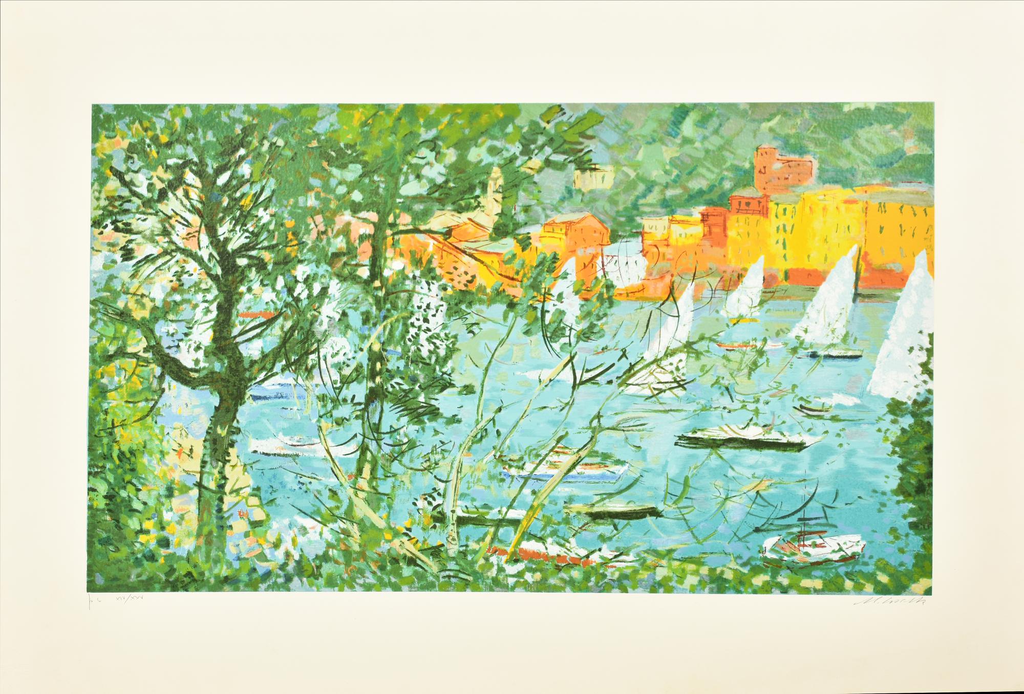 Michele Cascella BARCHE A VELA serigrafia materica su carta, cm 63x91; es....
