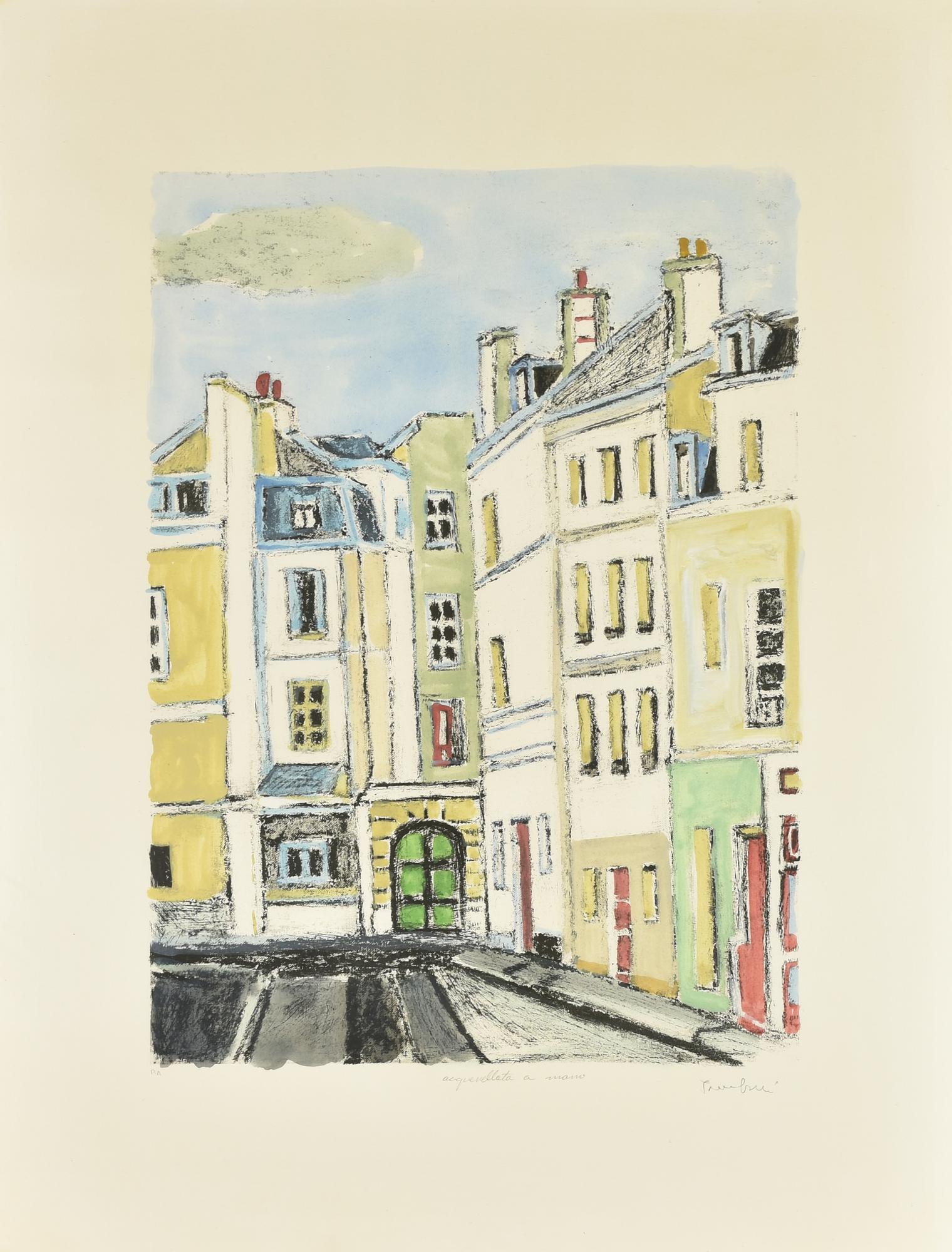 Orfeo Tamburi CASE litografia su carta acquarellata a mano, cm 88x65; es....