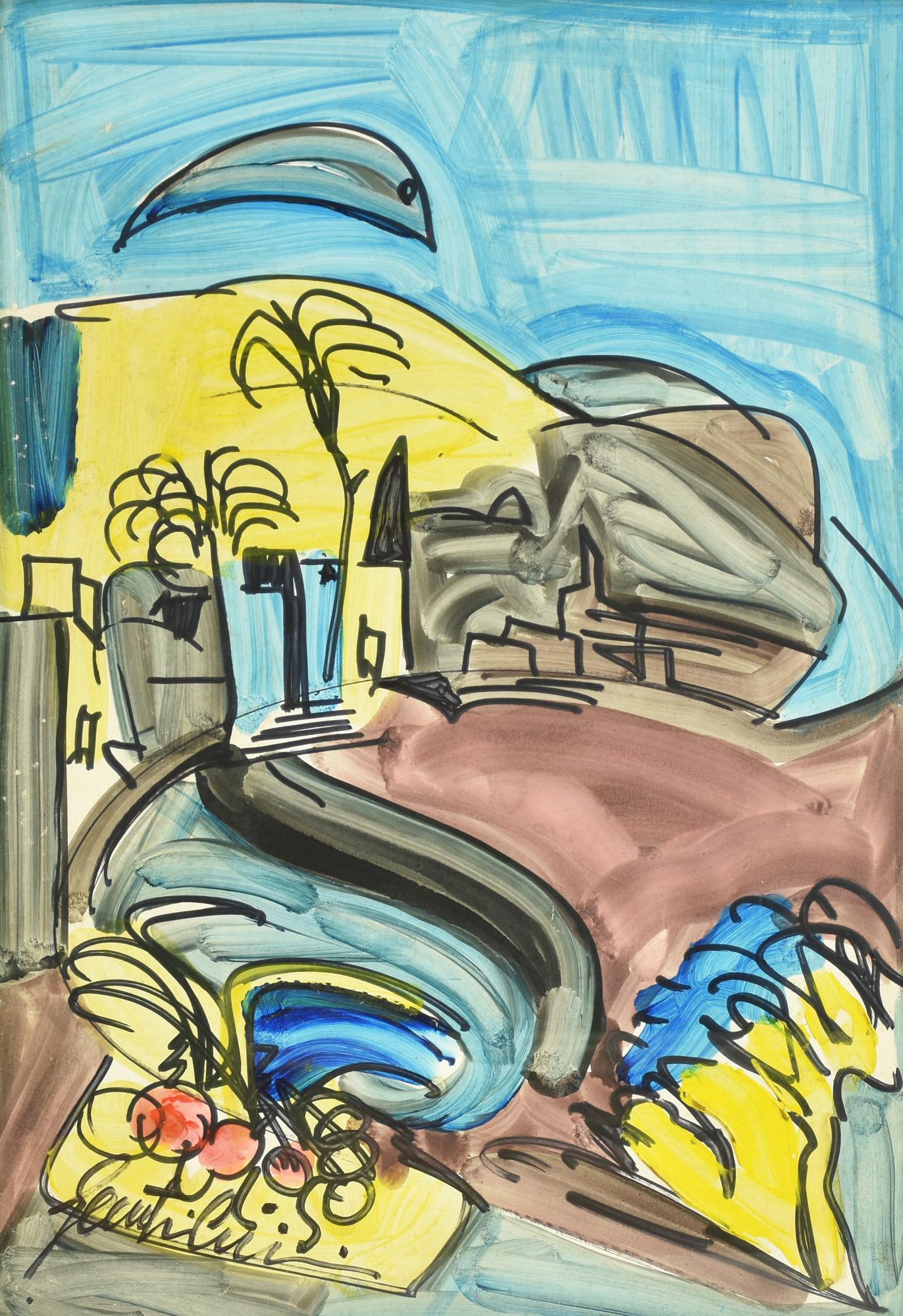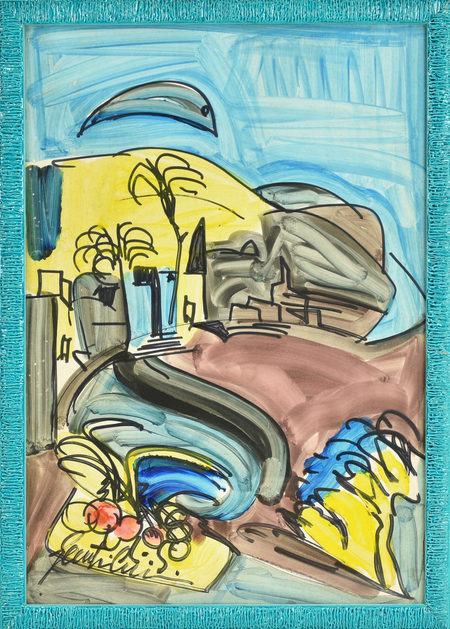 Aldo Gentilini PAESAGGIO acrilico su cartoncino, cm 50x35 firma