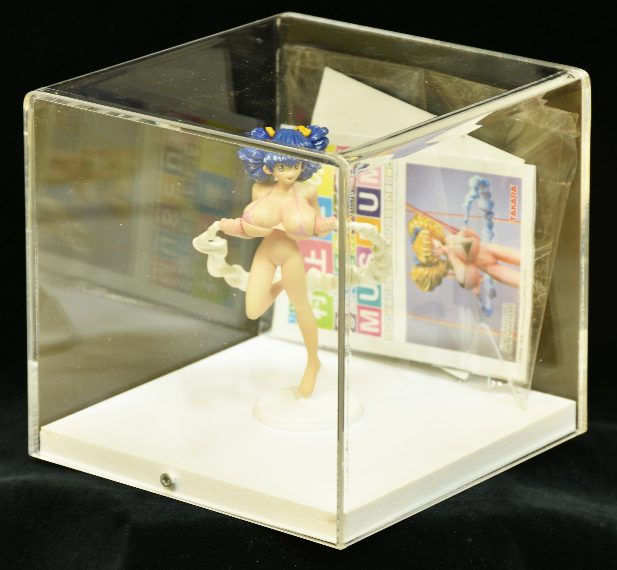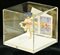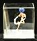 gadget in plastica entro teca di plexiglass, cm 12x12