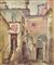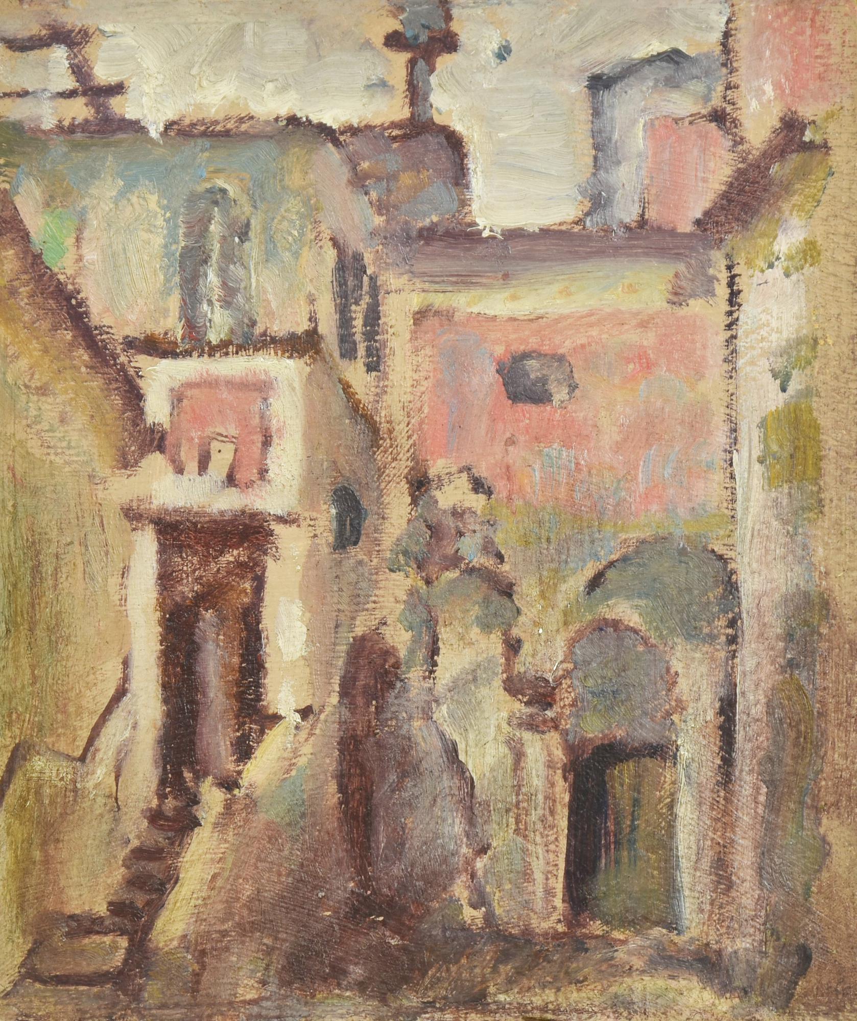 Enrico Allimandi IL BORGO olio su cartone, 19x15 cm eseguito nel 1950 circa