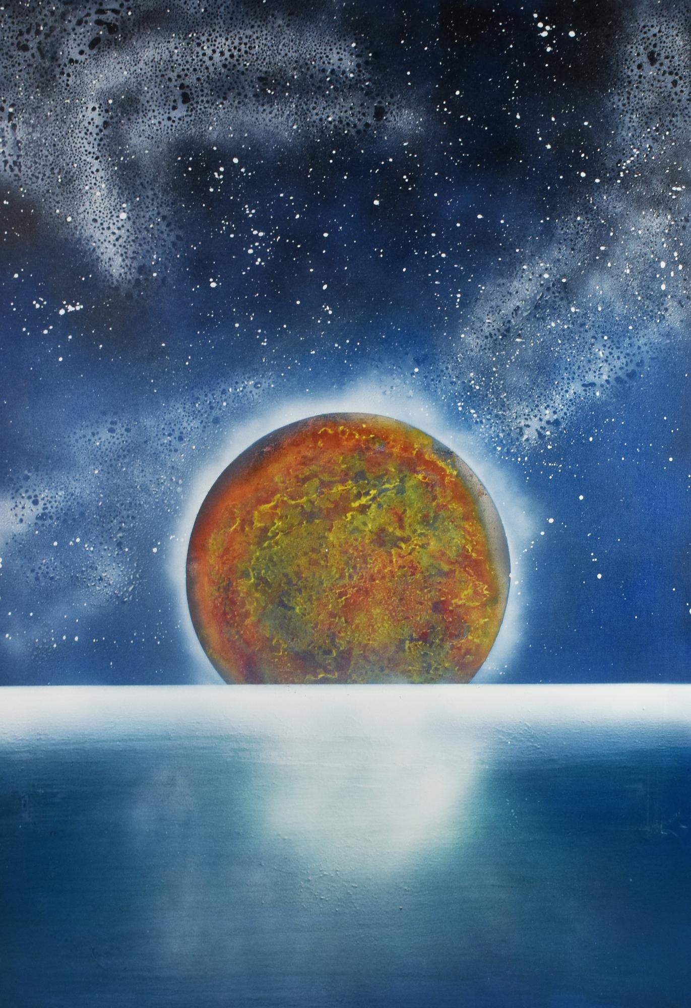 Raffaele Bassano LA LUNA E IL SOGNATORE acrilico su tela, cm 100x70 sul...
