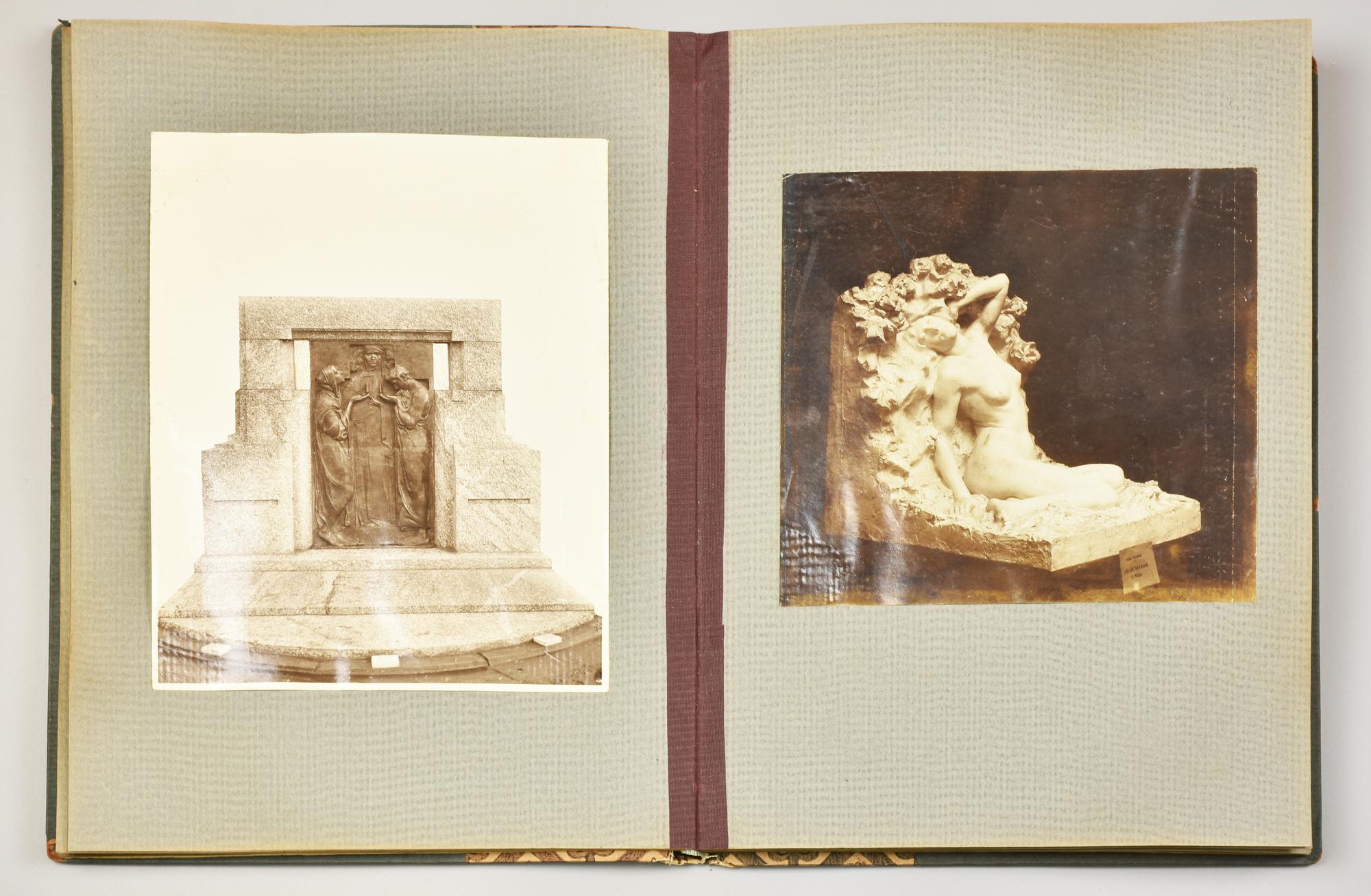 contenente 39 fotografie delle sculture di Cesare Ravasco con due dediche. Alcune fotografie con timbro a secco dei fotografi Emilio Sommariva, Gino Ferri, Achille Ferrario. Foto del periodo 1903-1930