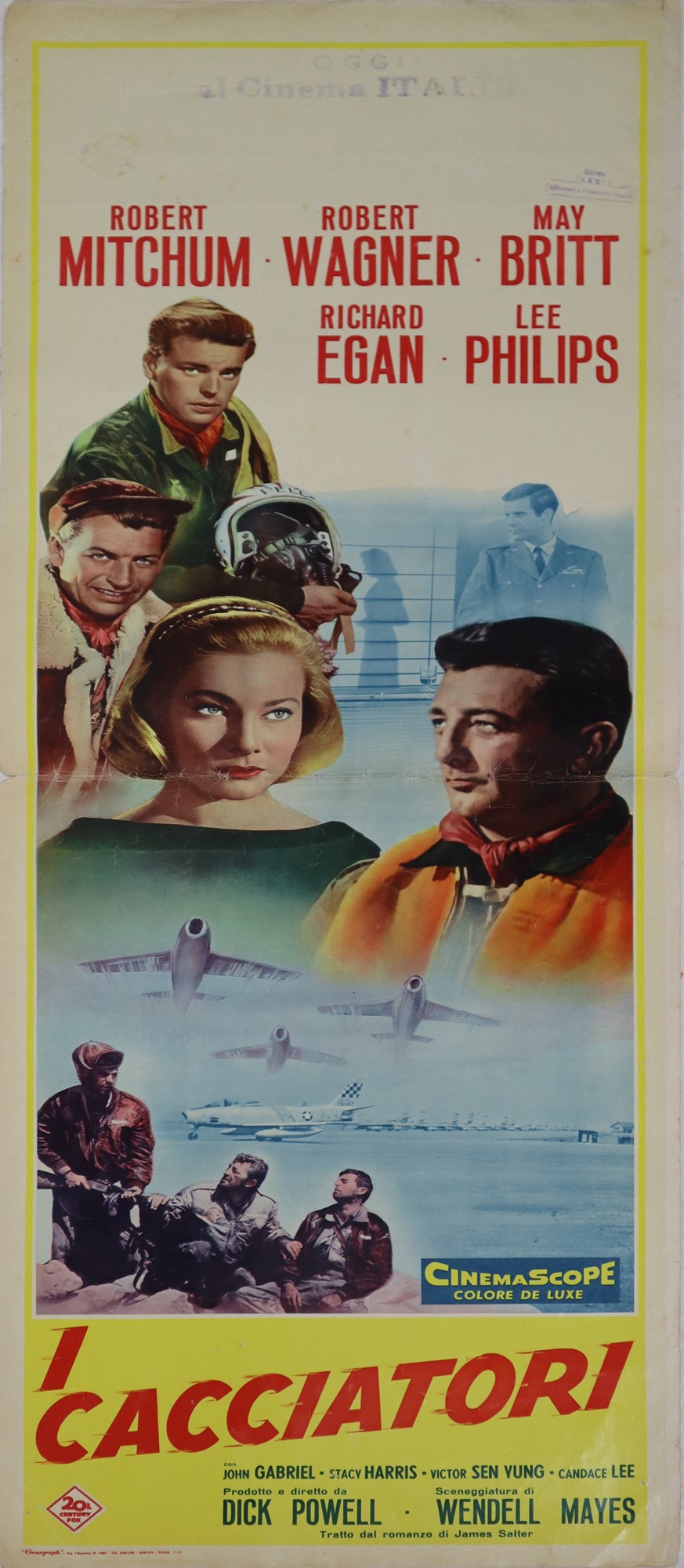 Locandina gigante cinema "I cacciatori", 1958 h cm 100 x cm 36 Prima Edizione Italiana, normali segni d'uso