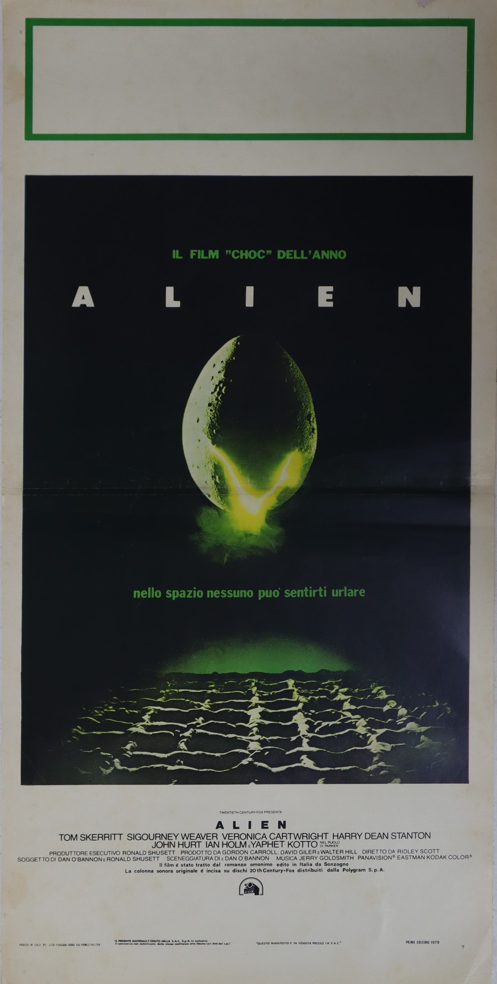 Locandina cinema ''Alien'', 1979 cm 70 x cm 33 Prima Edizione Italiana, printed in Italy, datato in basso a destra, normali segni d'uso
