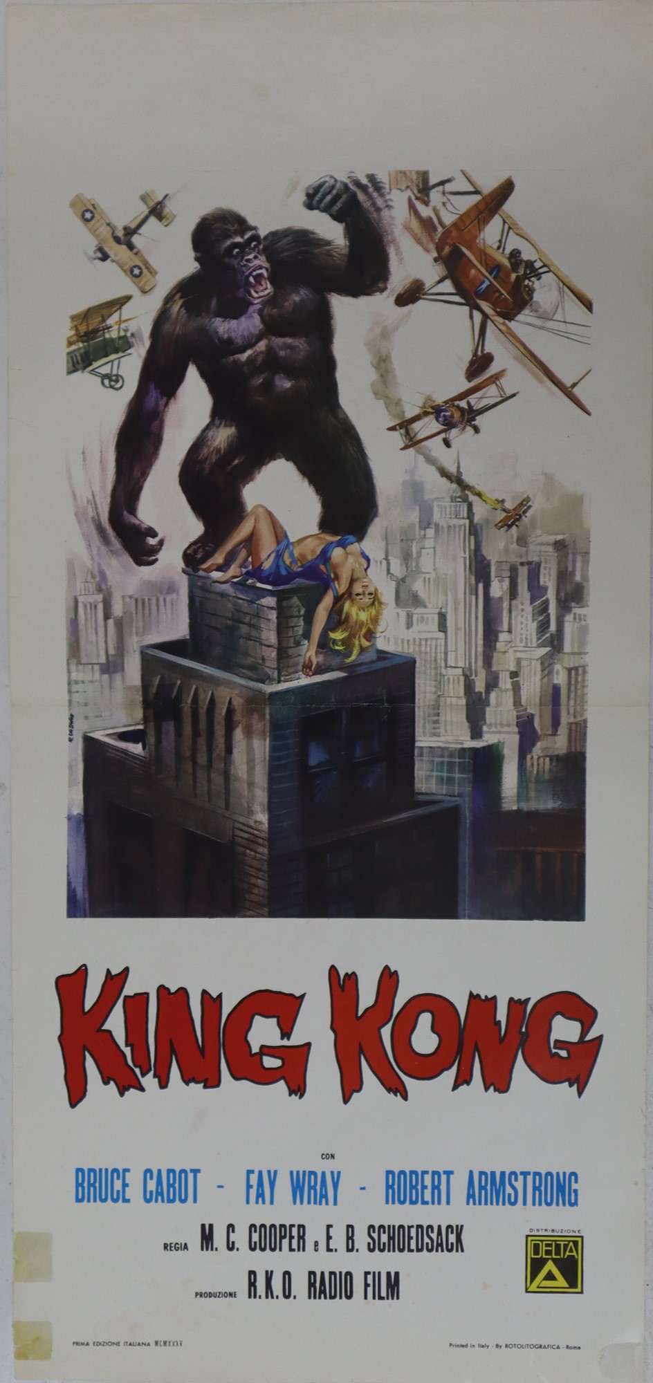 Locandina cinema ''King Kong'', 1935 cm 70 x cm 33 Prima Edizione Italiana, datato in basso a sinistra, normali segni d'uso