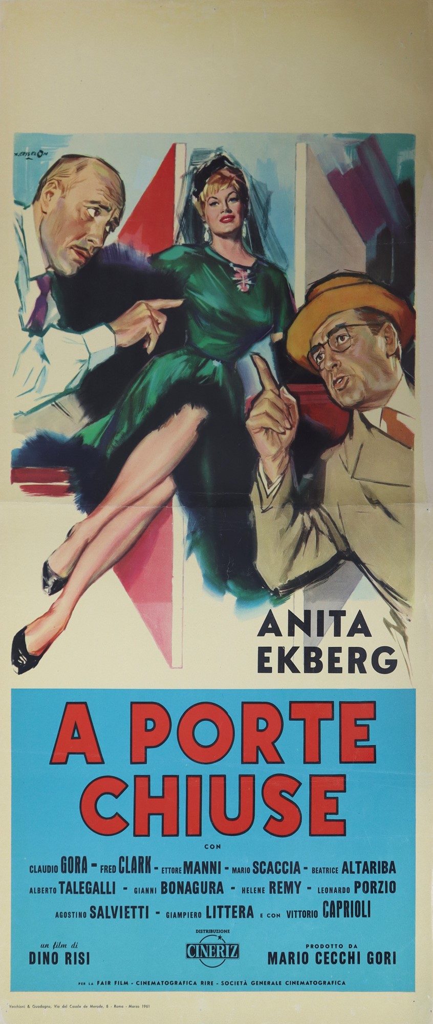 Locandina film ''A porte chiuse'', 1961 cm 70 x cm 33 Normali segni d'uso, datato in basso a sinistra