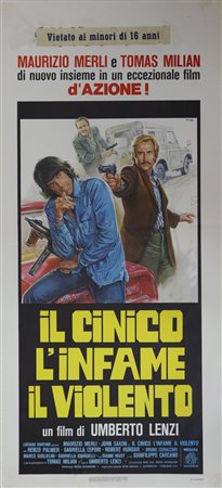 Locandina cinema ''Il cinico, l'infame e il violento'' cm 70 x cm 33 Roma, normali segni d'uso